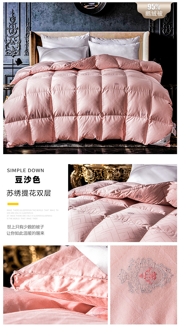 总绒研羽绒 2025魅力人生真丝大提花鹅绒被羽绒被冬被被子,灰色,藕粉,香槟色