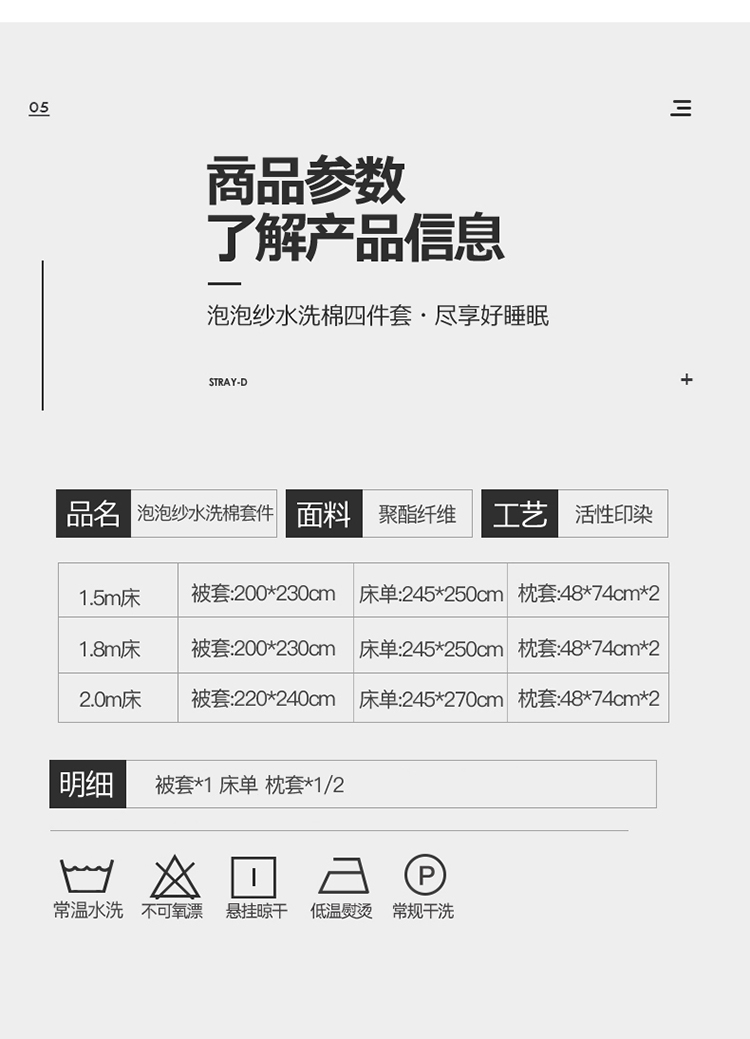 商品名称:花伞 2021新款工艺款泡泡纱+水洗棉四件套 白色泡泡