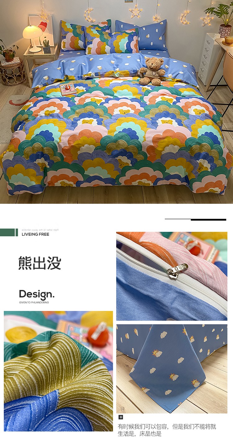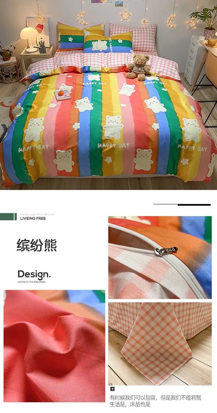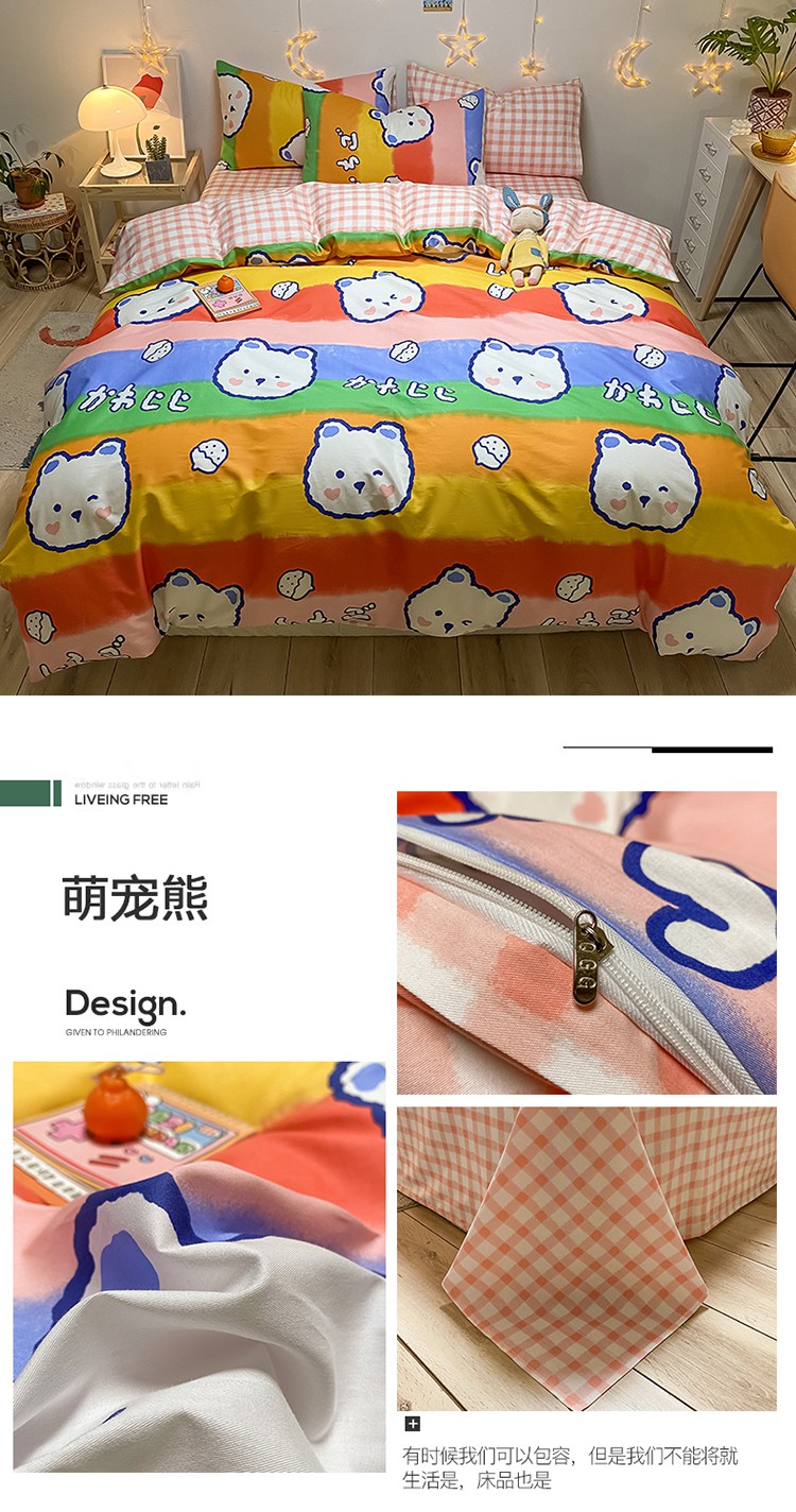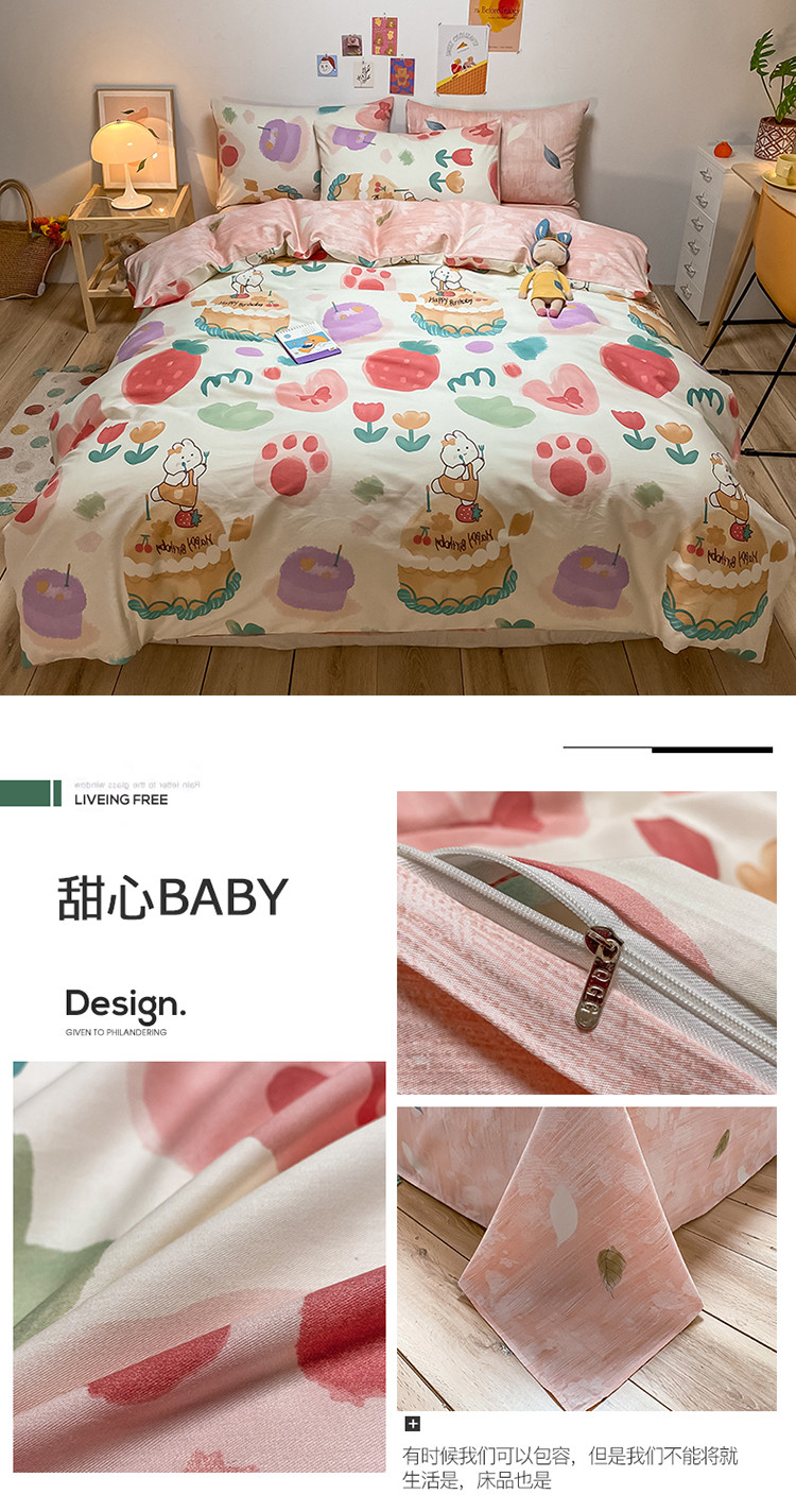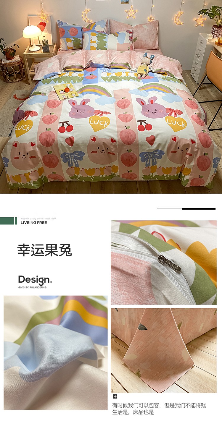 (总)琪格格纺织 2025新款全棉纯棉13372小清新四件套,爱心兔,白兔与熊,彩霞,美郁-紫,萌心兔,皮皮兔,苏珊花园,微雨,小粉兔,熊猫