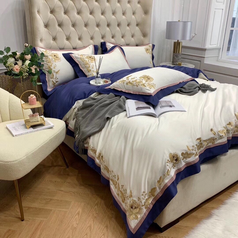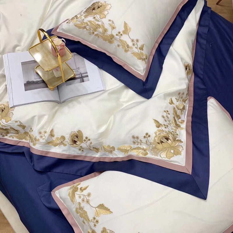 (总)玖玖爱家纺 2023新款120支贡缎长绒棉刺绣梦柔系列四件套,梦柔-香槟金,梦柔-香橙桔,梦柔-高级灰,梦柔-水蓝,梦柔-芙蓉玉