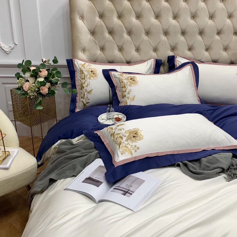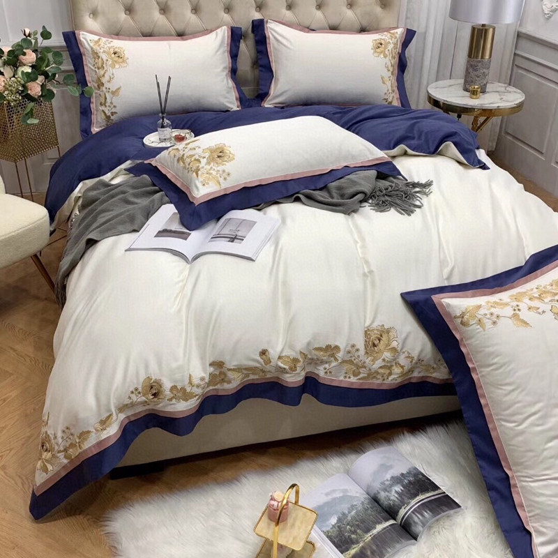 总玖玖爱家纺 纯棉100支贡缎长绒棉刺绣被套三件套四件套加大四件套,白色,高级灰,卡其,蓝灰,绿色,浅桔,深蓝,紫豆沙