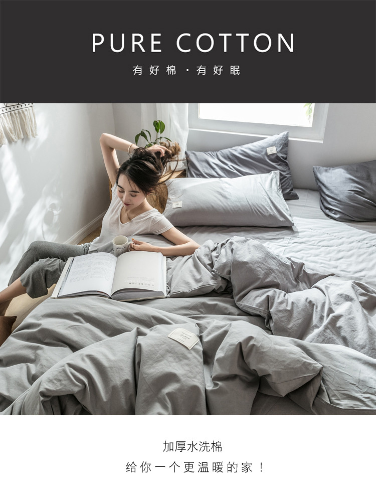 雅居纺 2022新款全棉水洗棉四件套 绅士灰