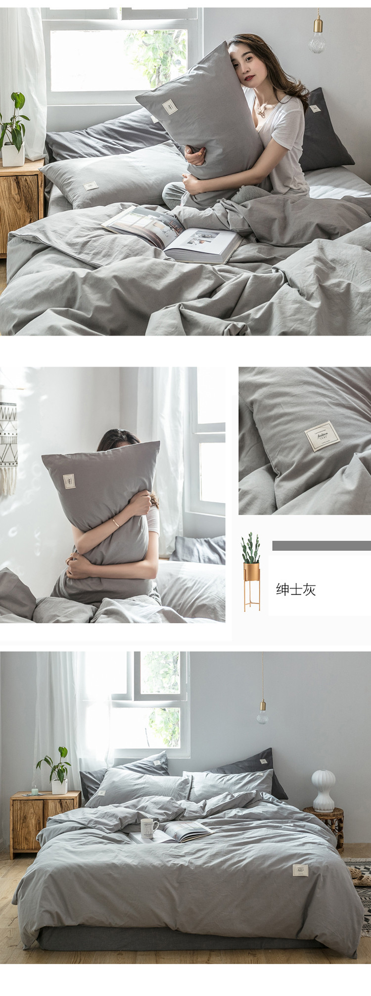商品名称:雅居纺 2022新款全棉水洗棉四件套 绅士灰