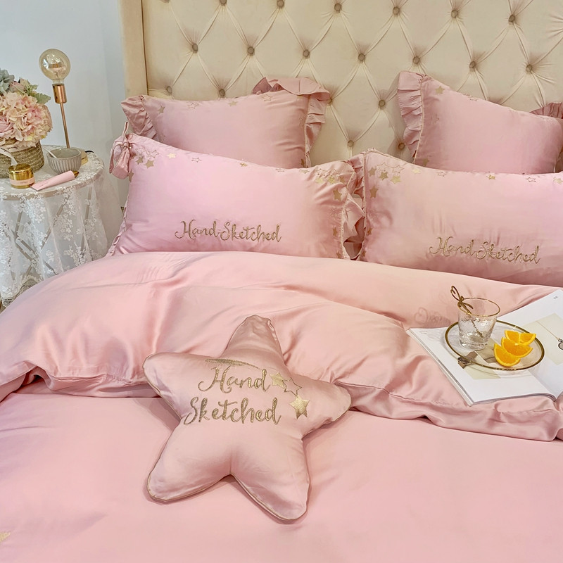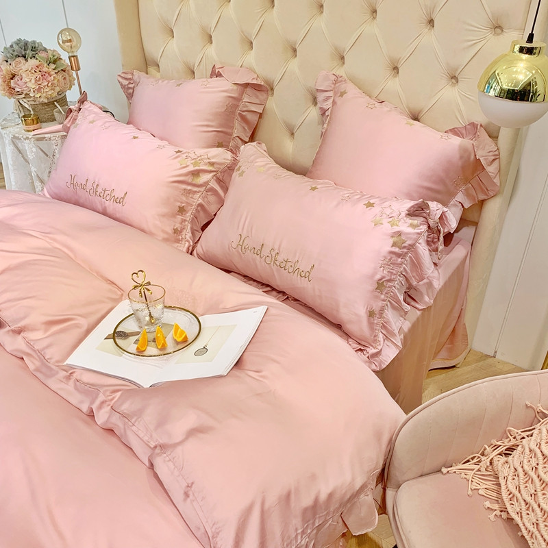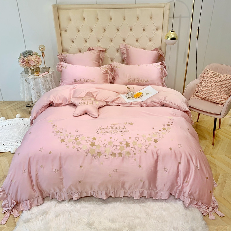 (总)馨蕊家居 新款80S兰精天丝四件套-星愿-萝莉粉