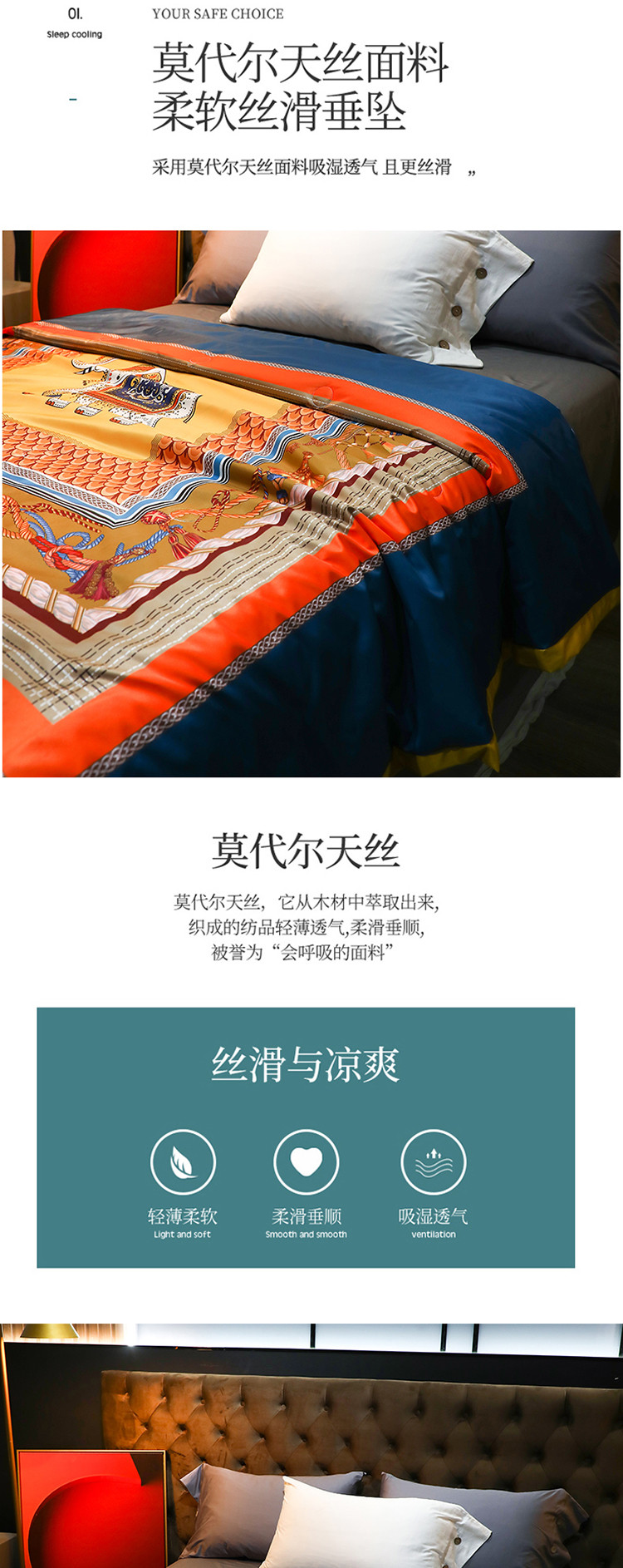 商品名称:薇玛仕2023莫代尔天丝轻奢大版花夏凉被 征象