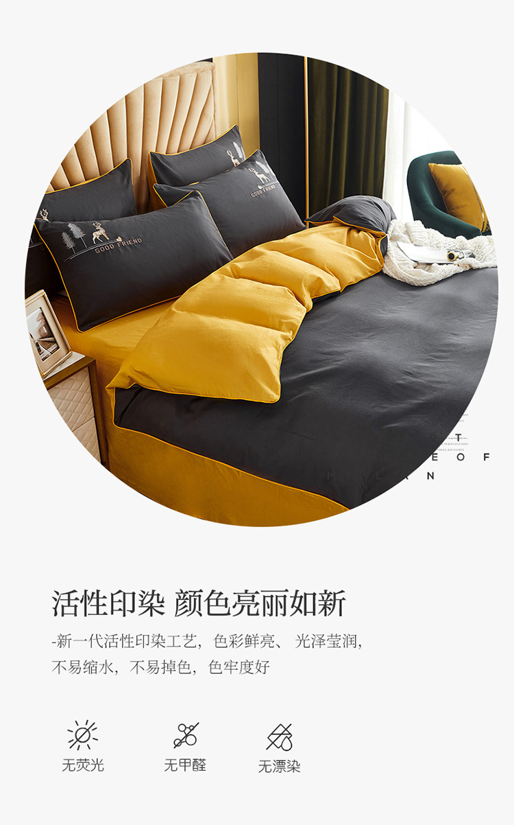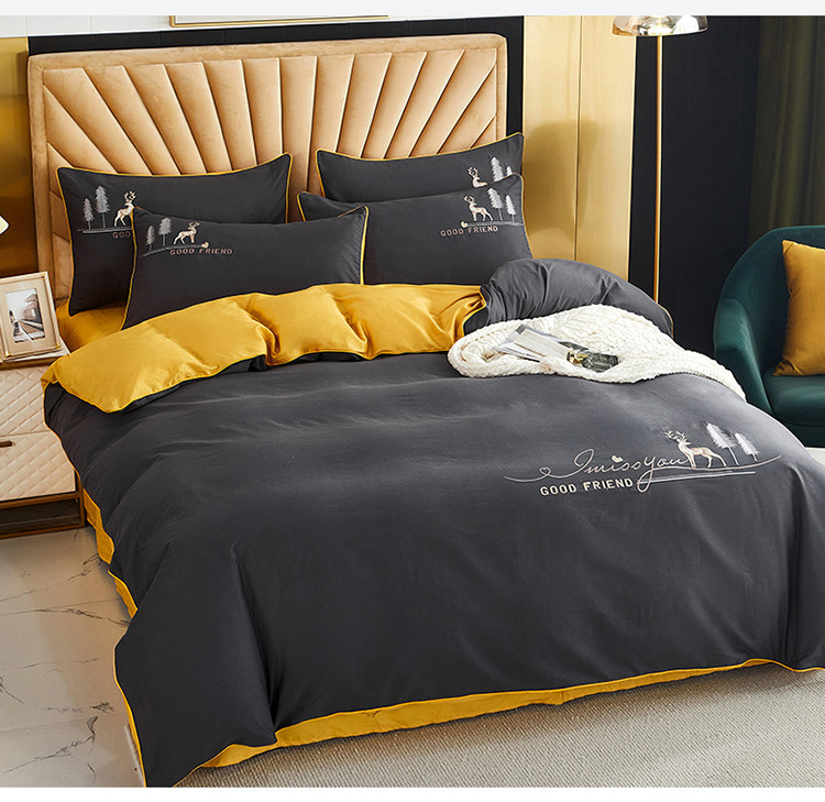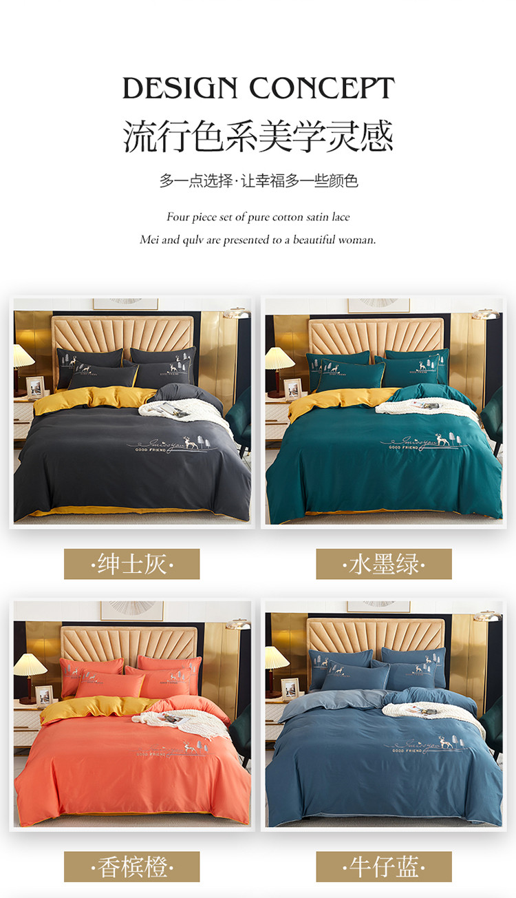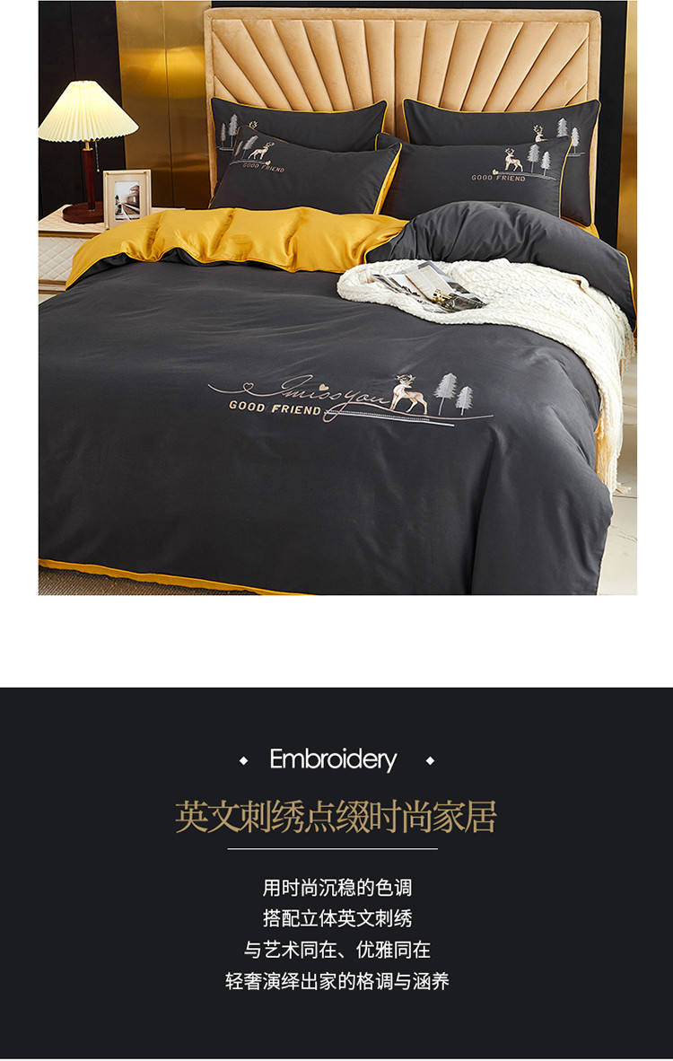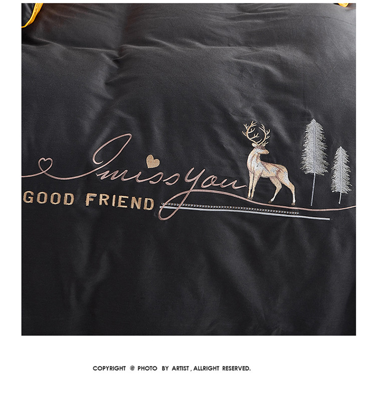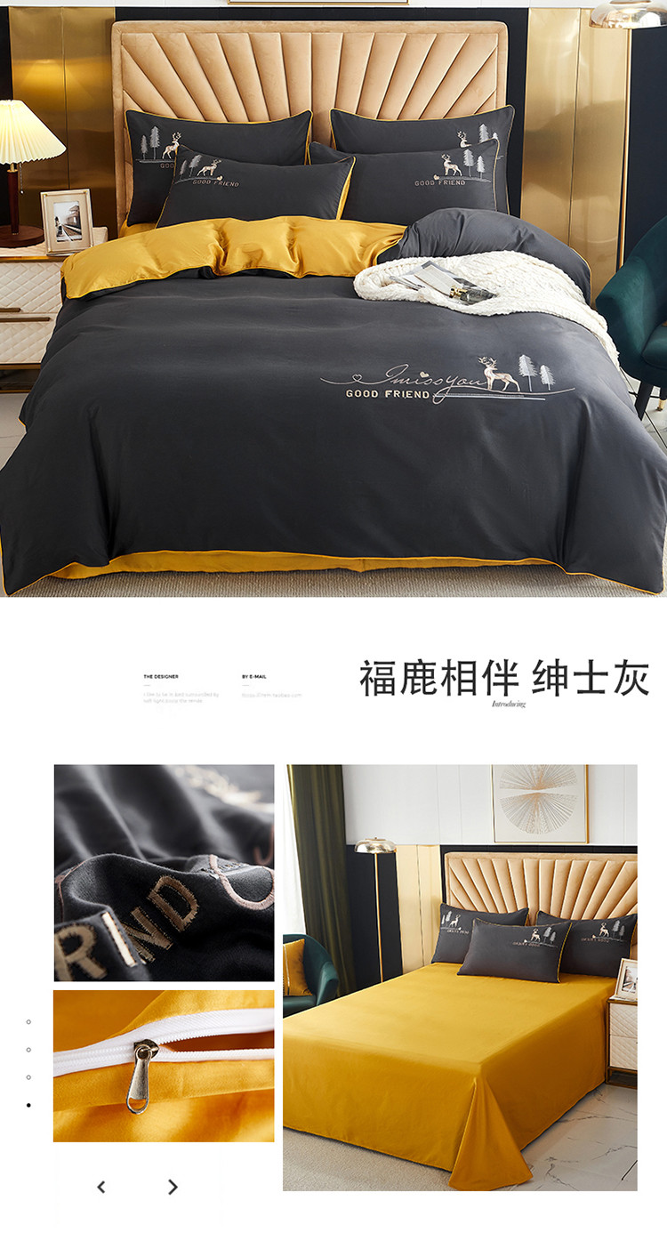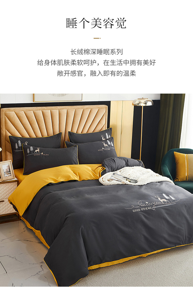 商品名称:金窝窝家纺 2024新款纯棉绣花四件套 福鹿相伴绅士灰