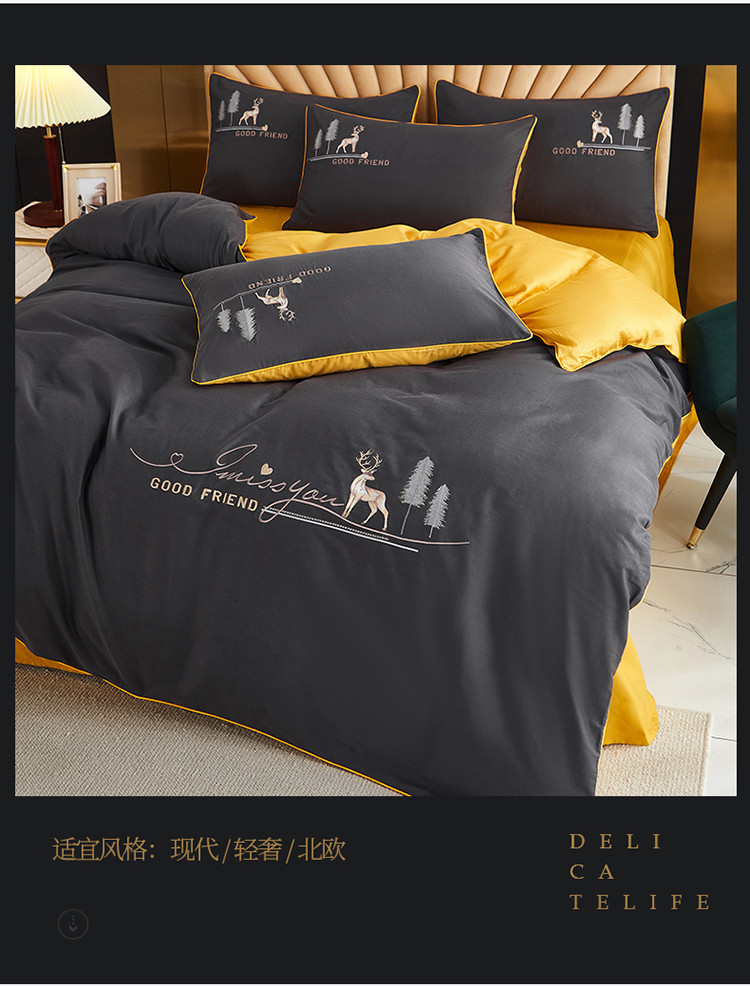 金窝窝家纺 2024新款纯棉绣花四件套 福鹿相伴绅士灰