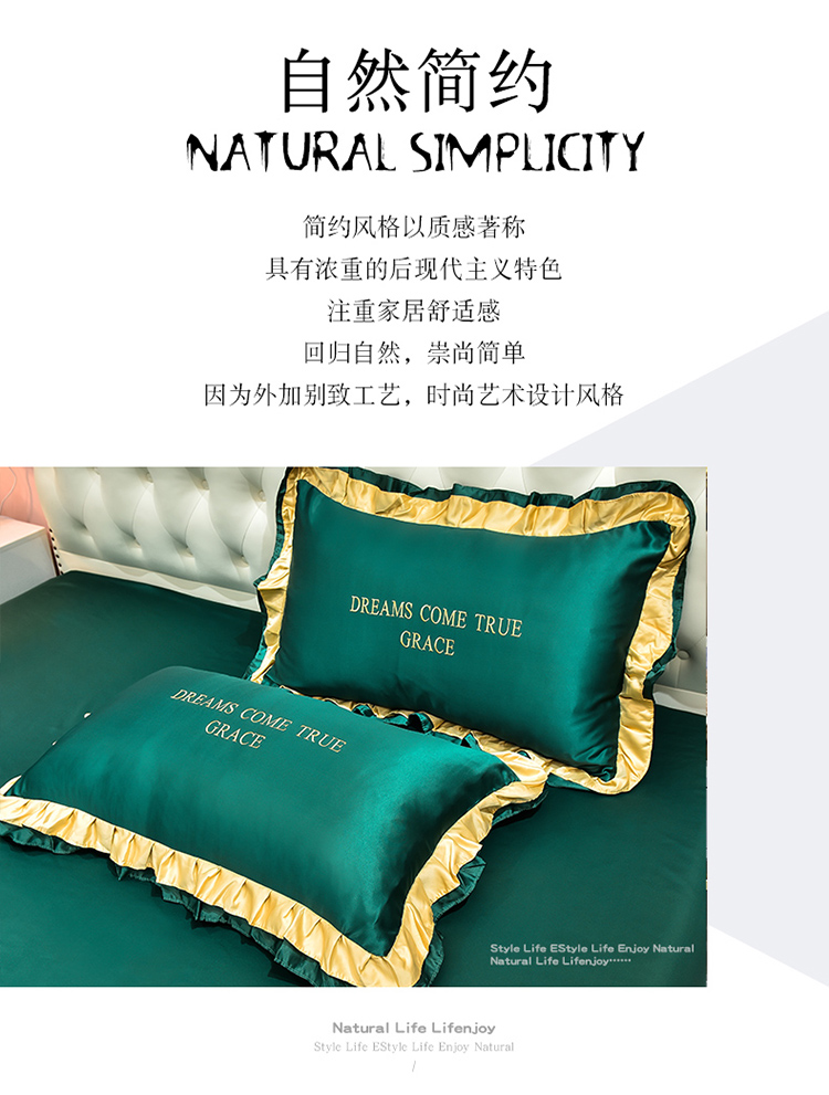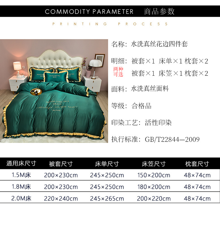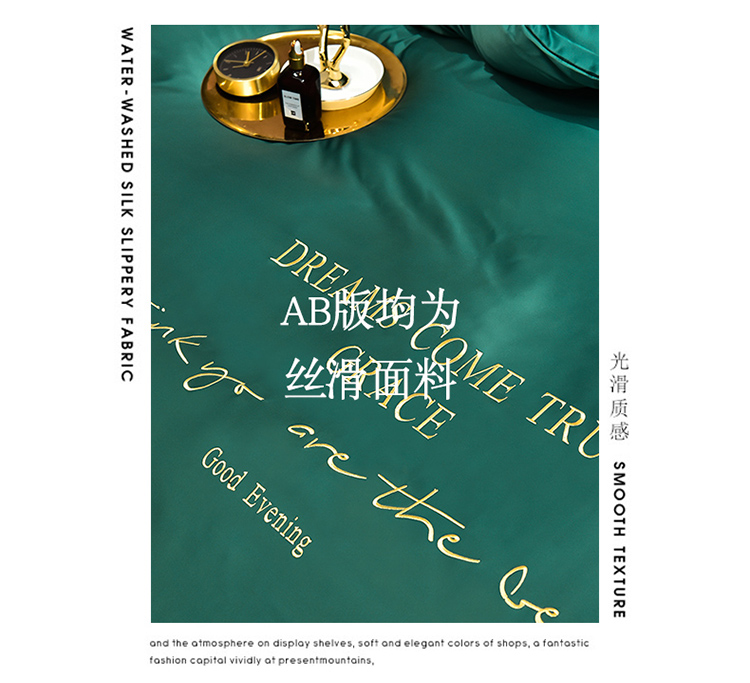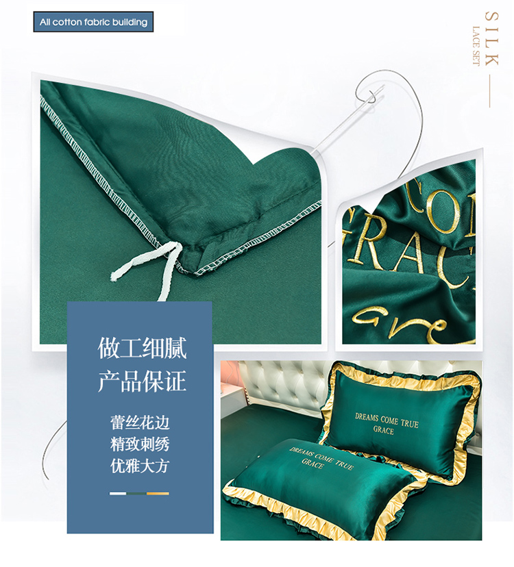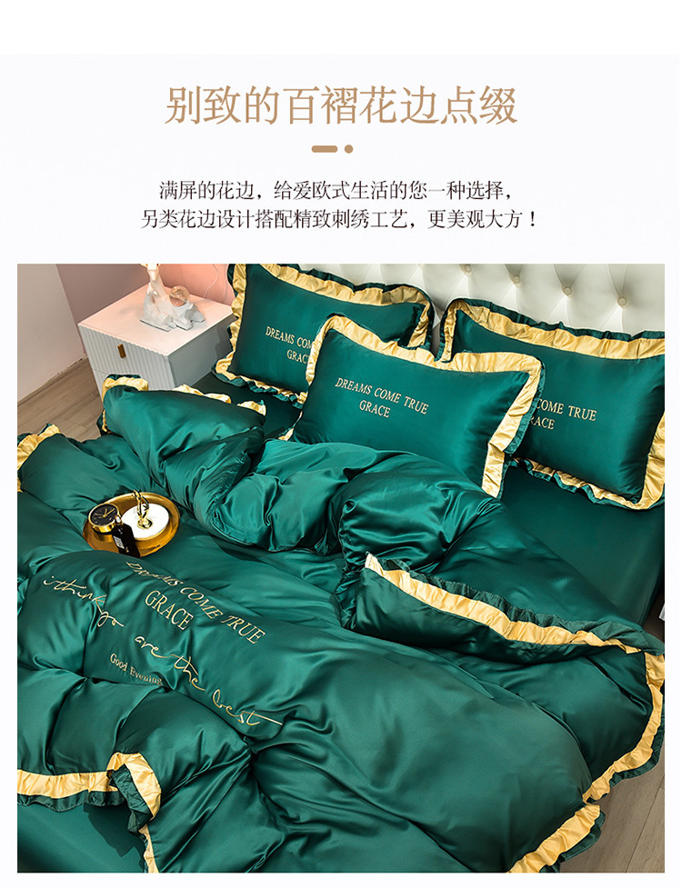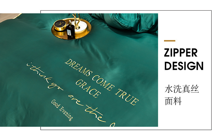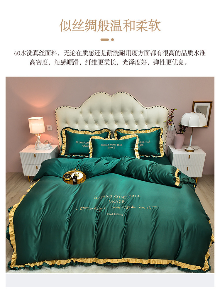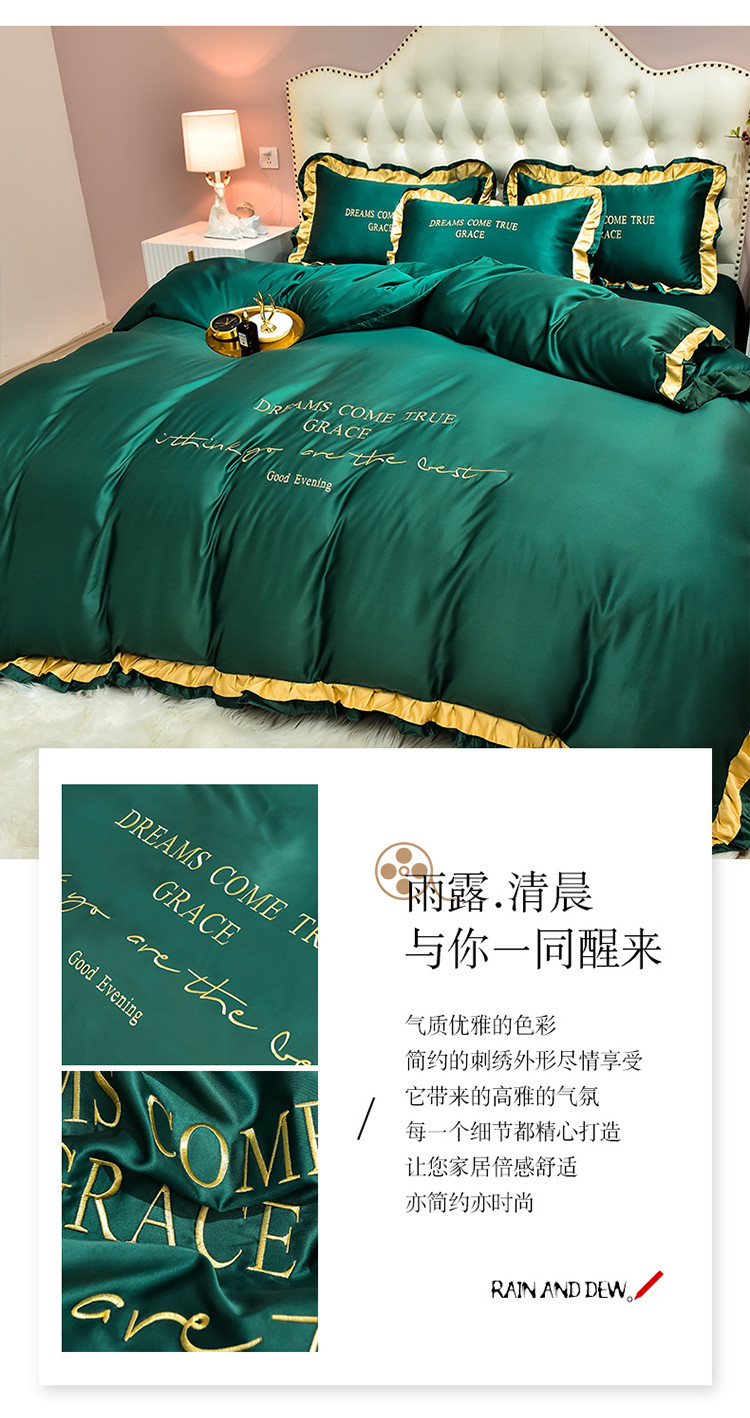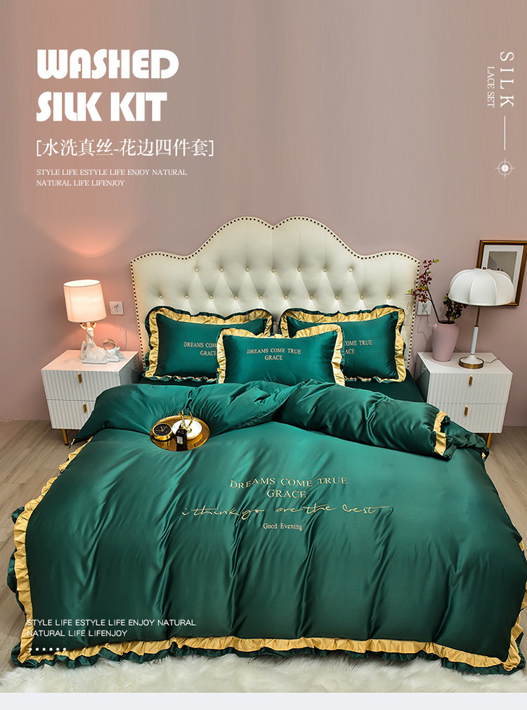 商品名称:2021新款水洗真丝四件套诺曼相机图 墨绿