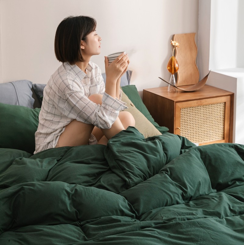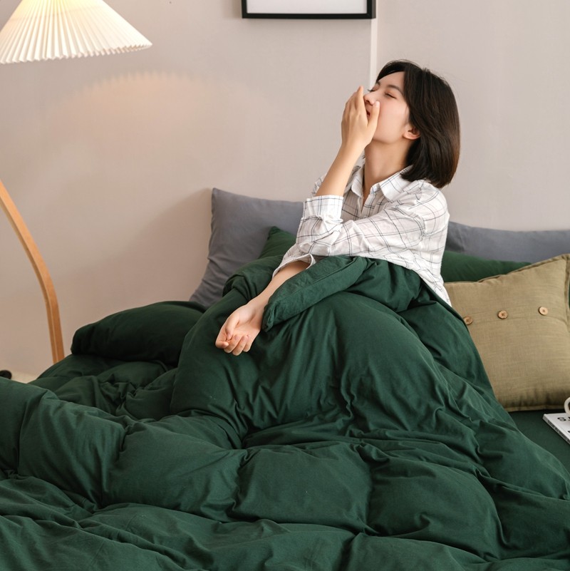 简煦 2025新款针织印染纯色四件套 印-墨绿