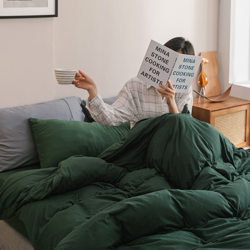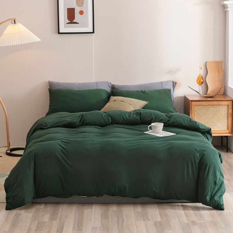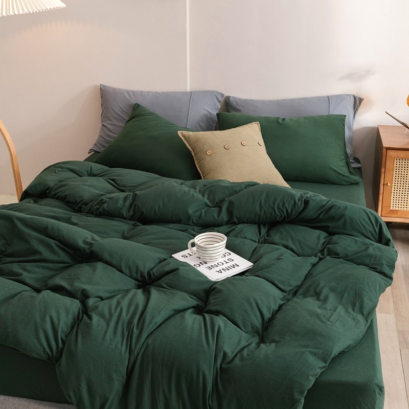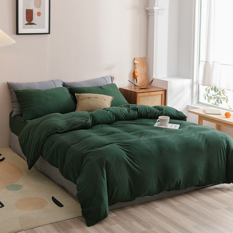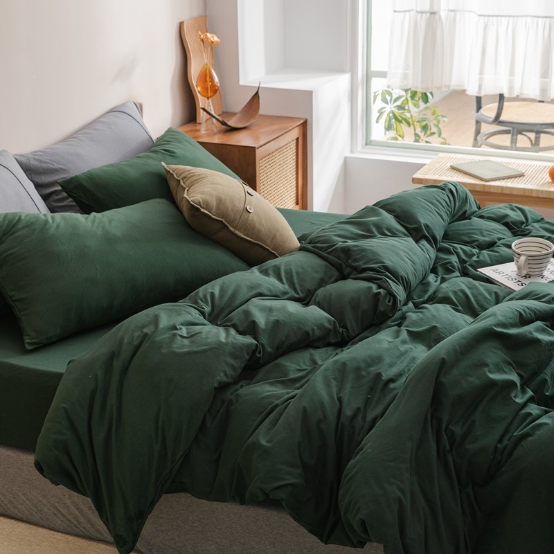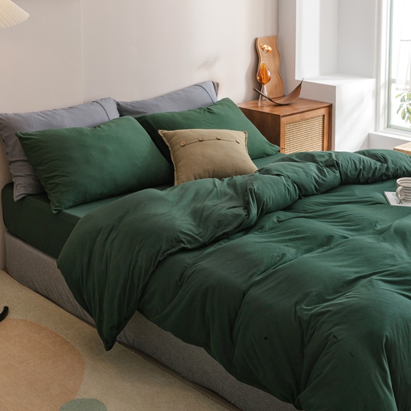 商品名称:简煦 2025新款针织印染纯色四件套 印-墨绿