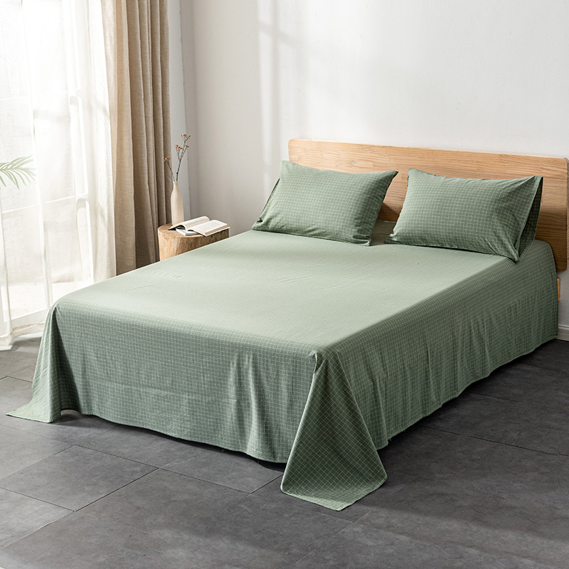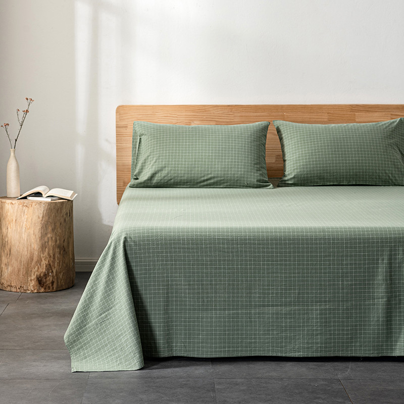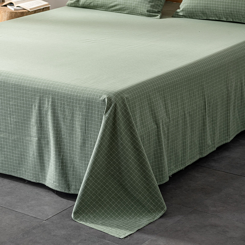 久典 2022新款色织全棉水洗棉单品床单 浓绿格