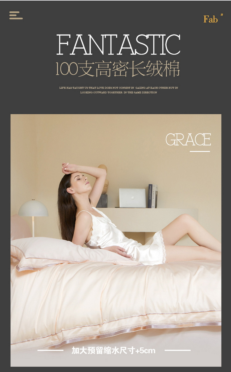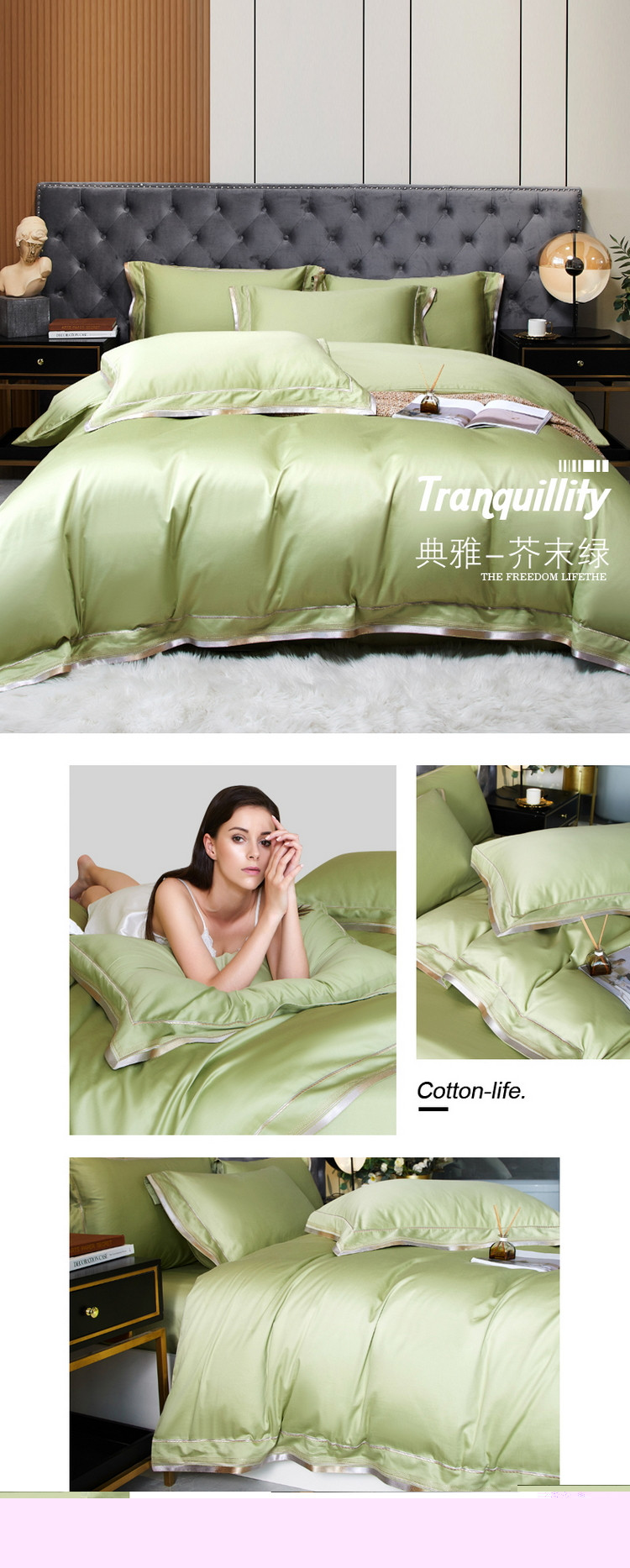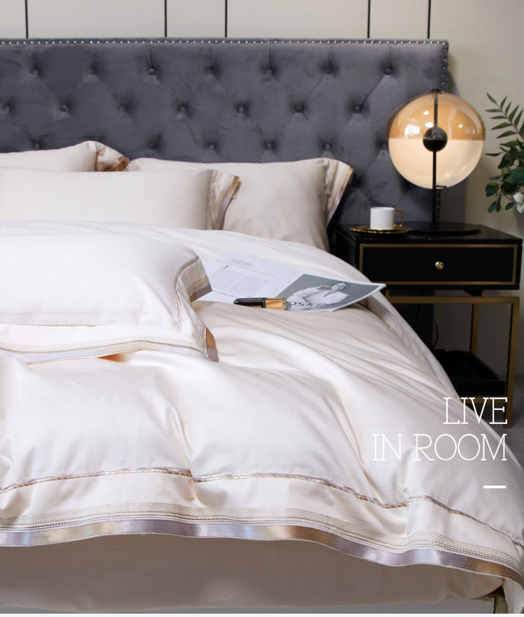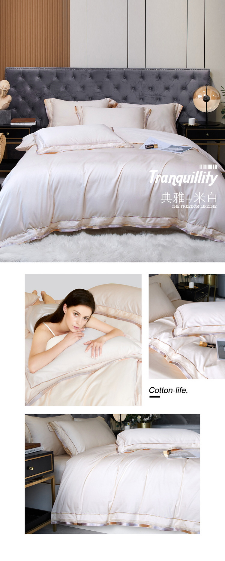 商品名称:618家纺新款100S长绒棉四件套100支被套60支床上用品典雅-米白