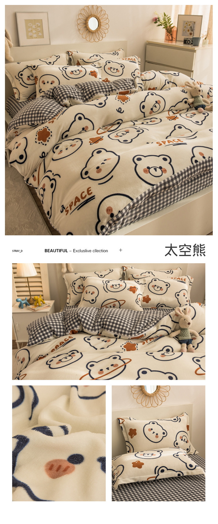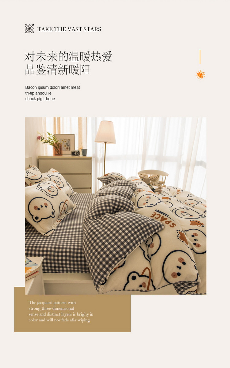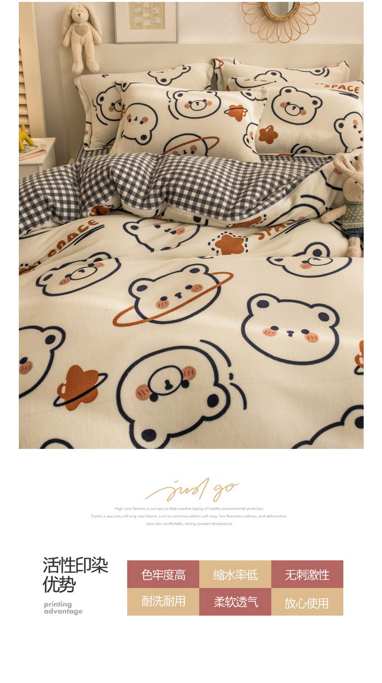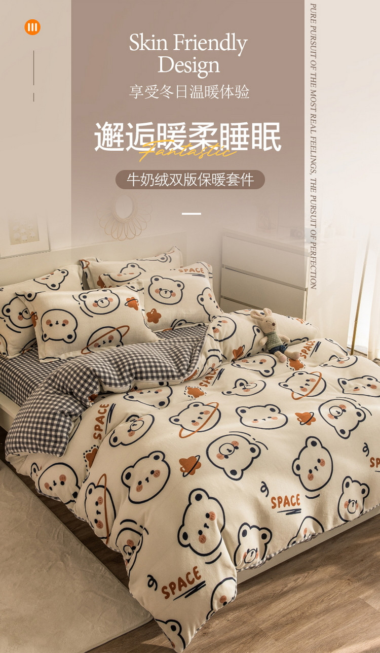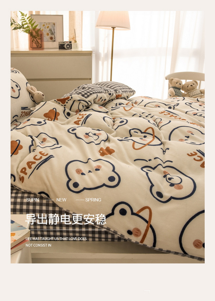 当前位置: 91家纺网 > 商品网购 > 床品套件 > 四件套 > 牛奶绒四件套 > 丝羽坊 2021新款牛奶绒法莱绒保暖套件 太空熊