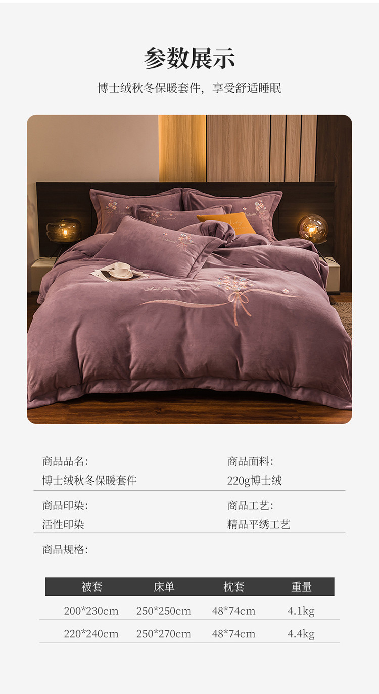 (总)绒博士 2025新款220g高克重博士绒秋冬保暖四件套--倾城之恋,倾城之恋 幽兰,倾城之恋 粉色,倾城之恋 香芋紫,倾城之恋-豆沙,倾城之恋-青兰绿,倾城之恋-大红