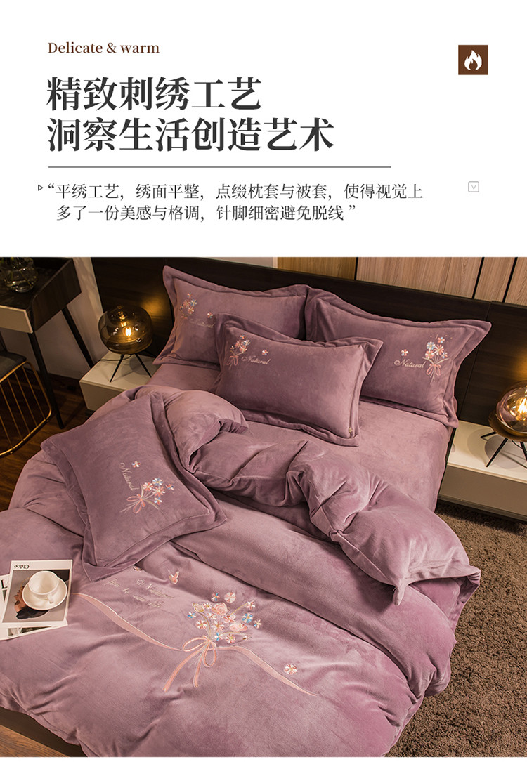 商品名称:绒博士 220g法莱牛奶水晶金貂魔法四件套-倾城之恋 香芋紫