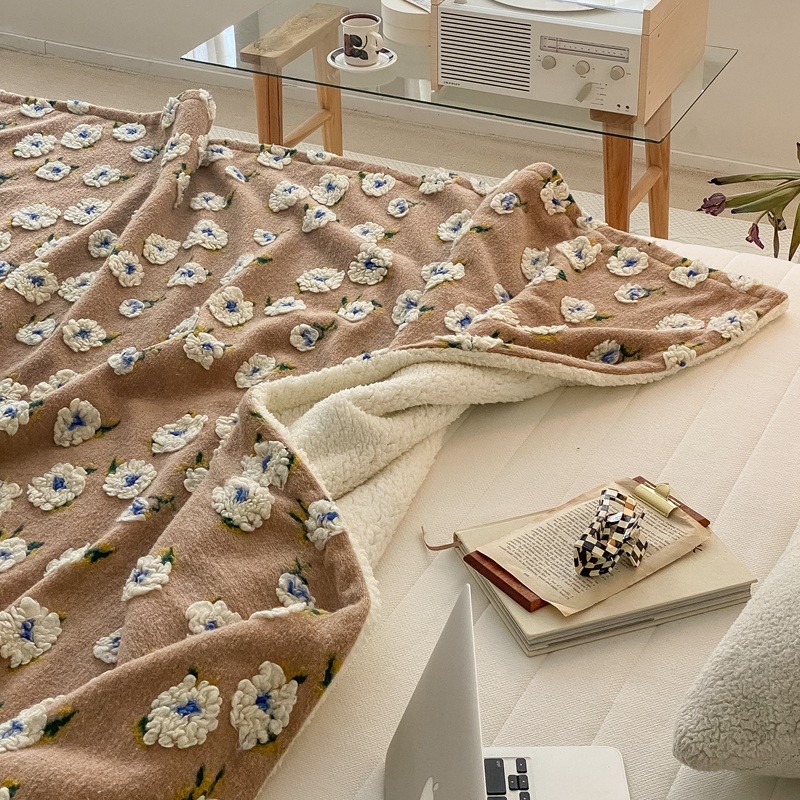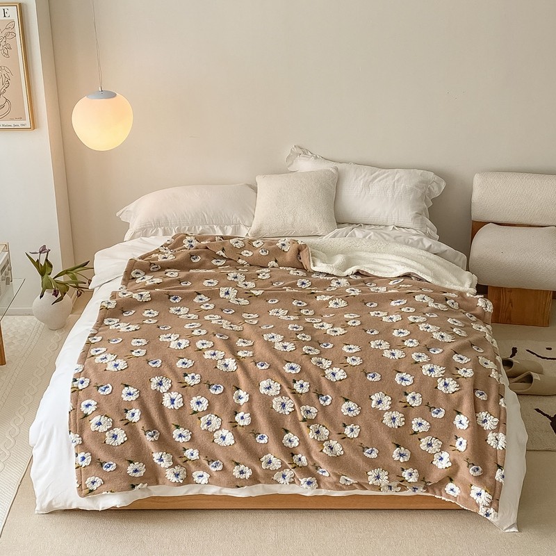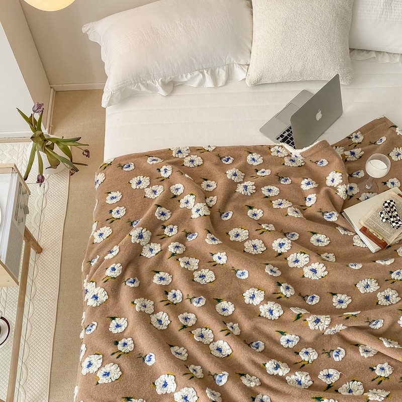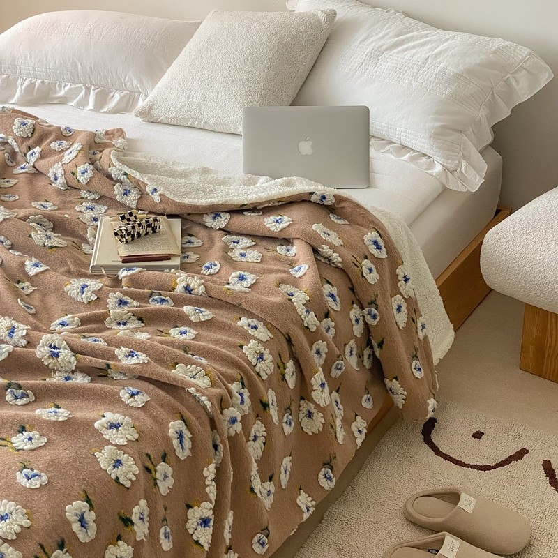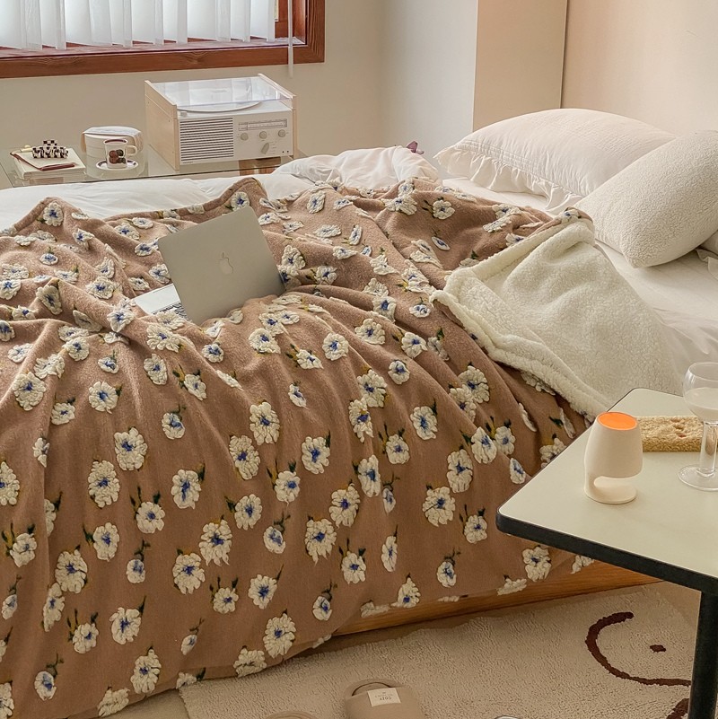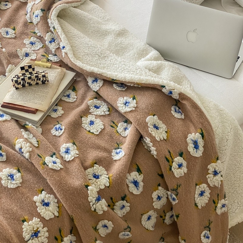 萝莉 2021新款立体羊毛绒双层毯 咖色雏菊