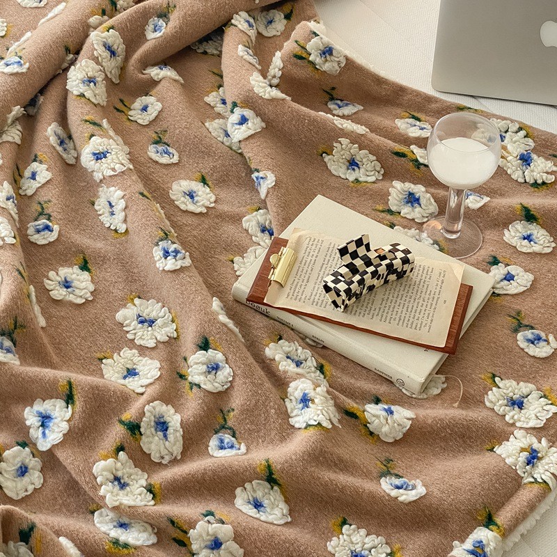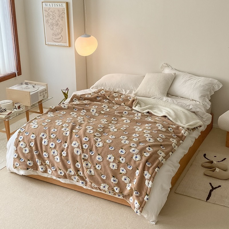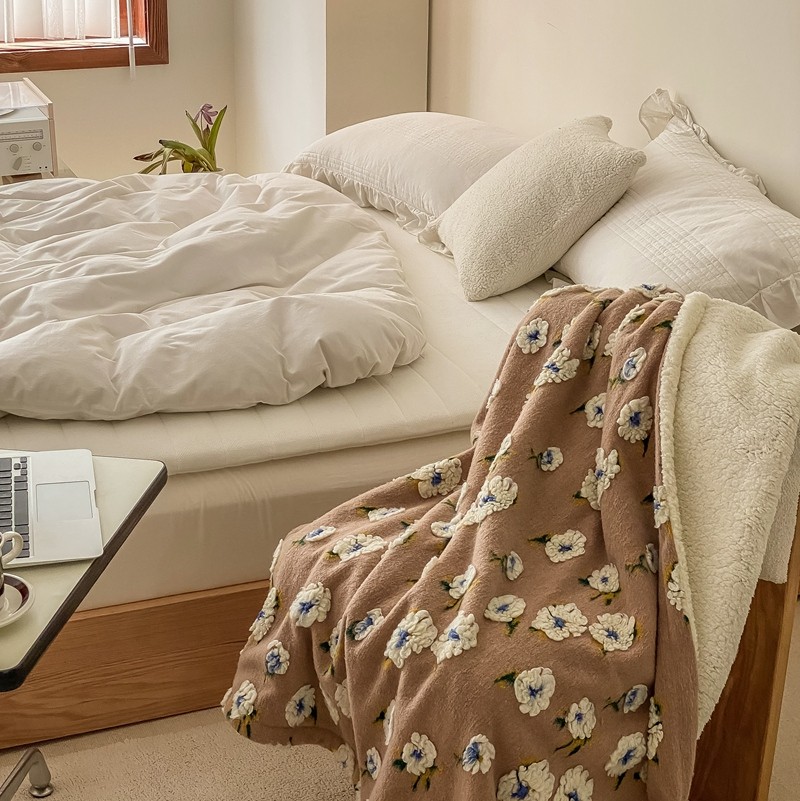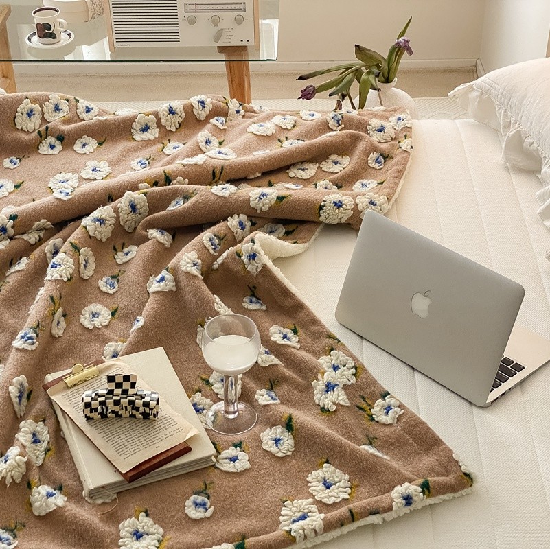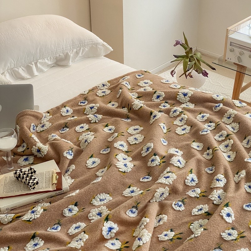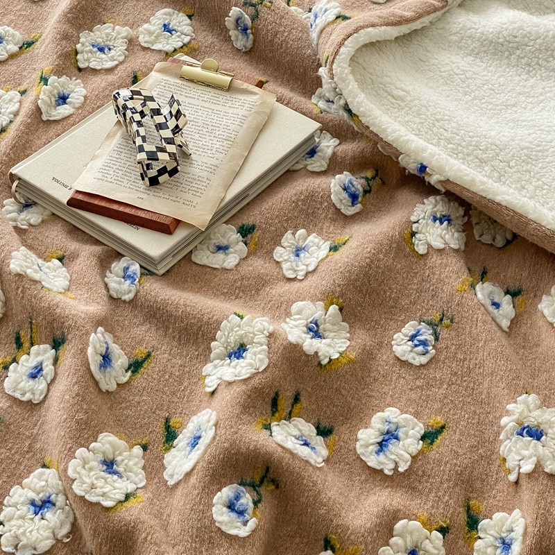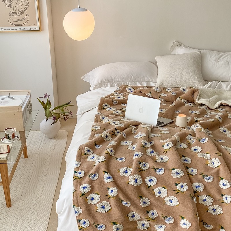 萝莉 2021新款立体羊毛绒双层毯 咖色雏菊