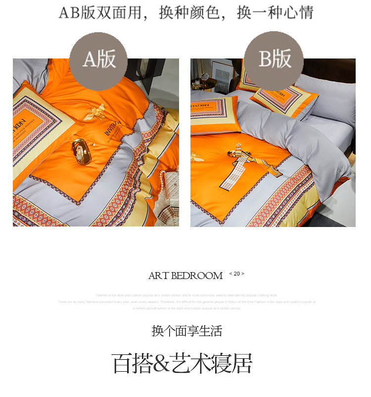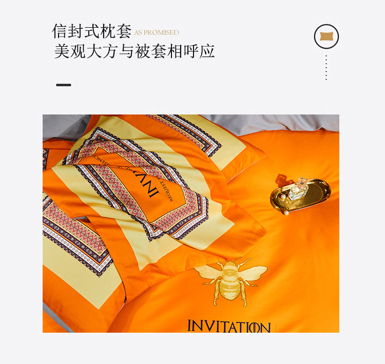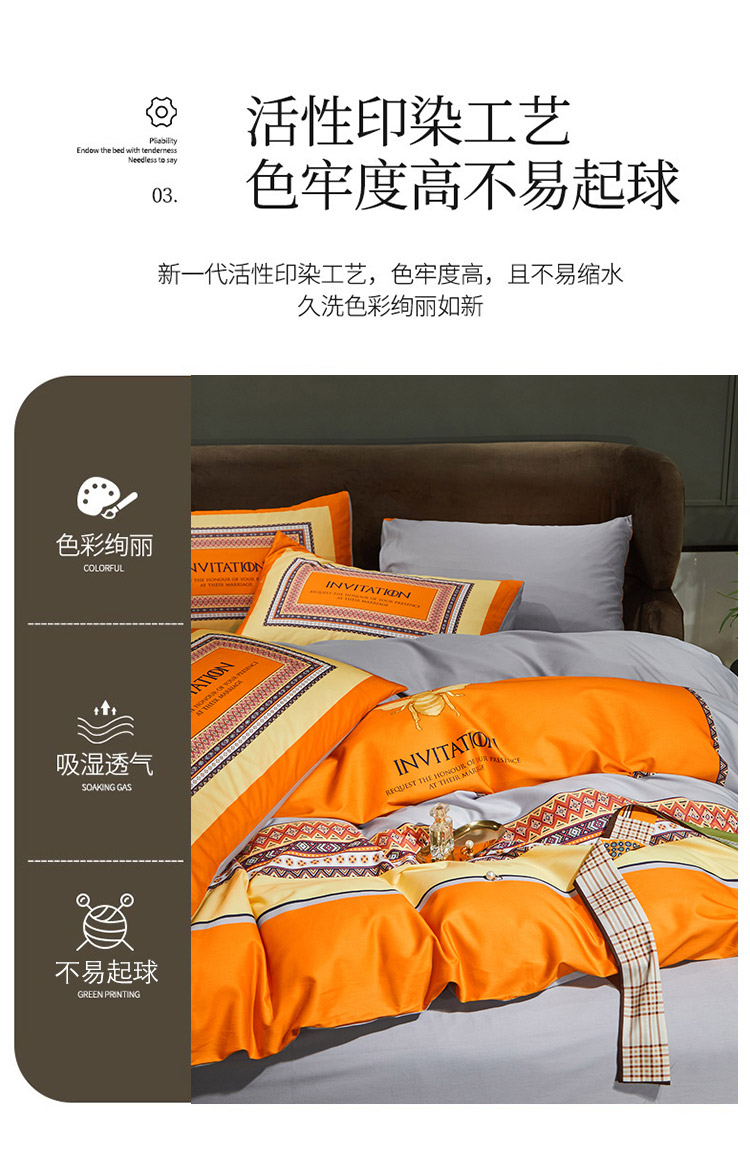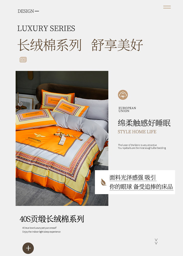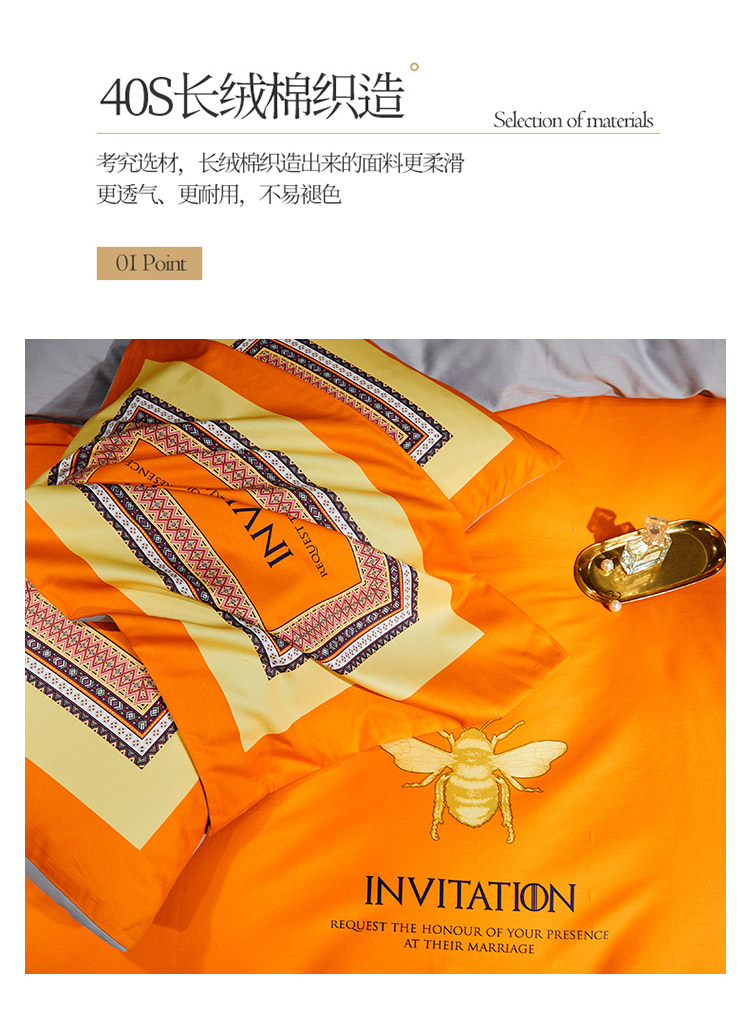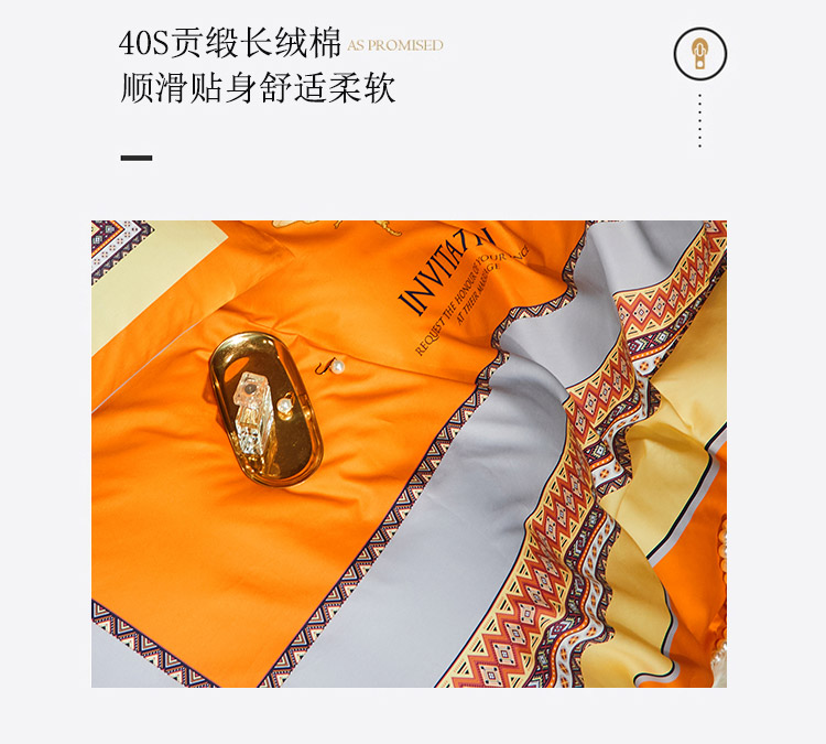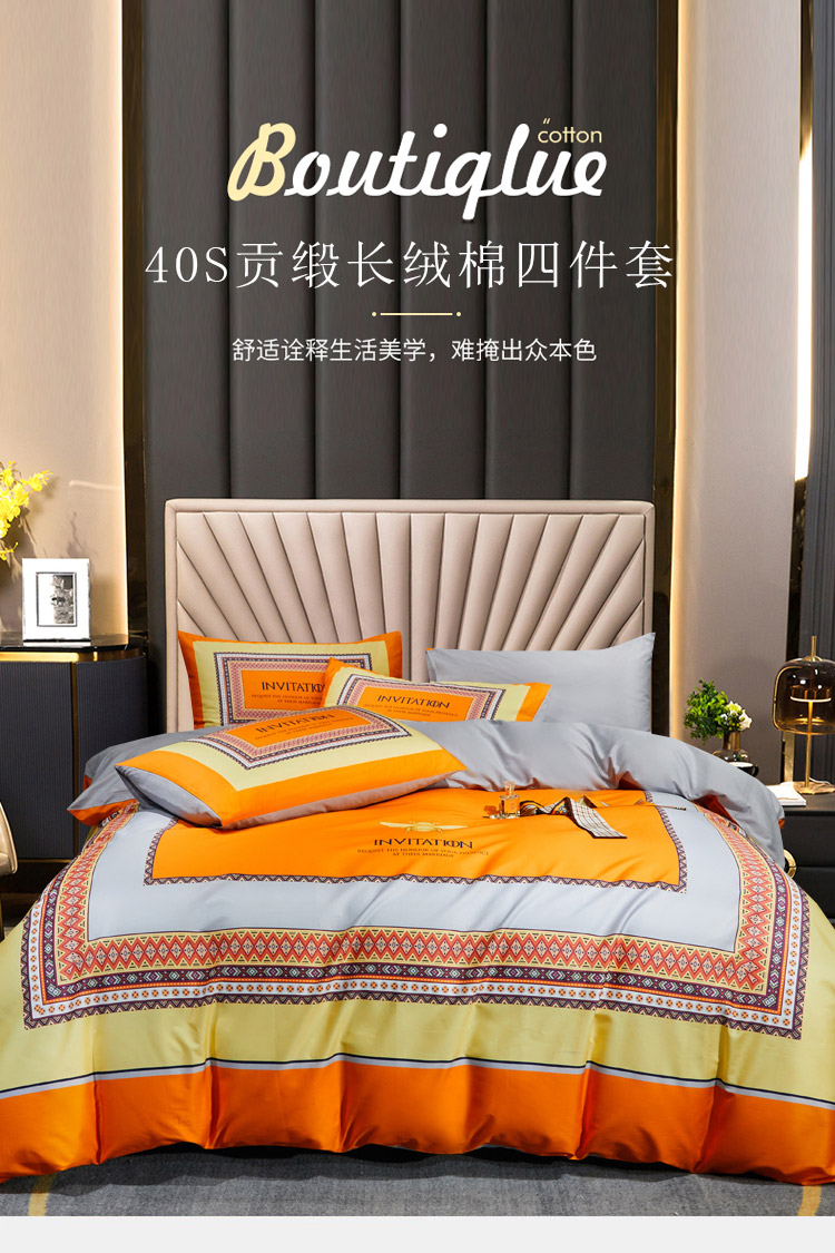 商品名称:凡客 2022春夏新款60S贡缎长绒棉印花四件套 摩登夜曲