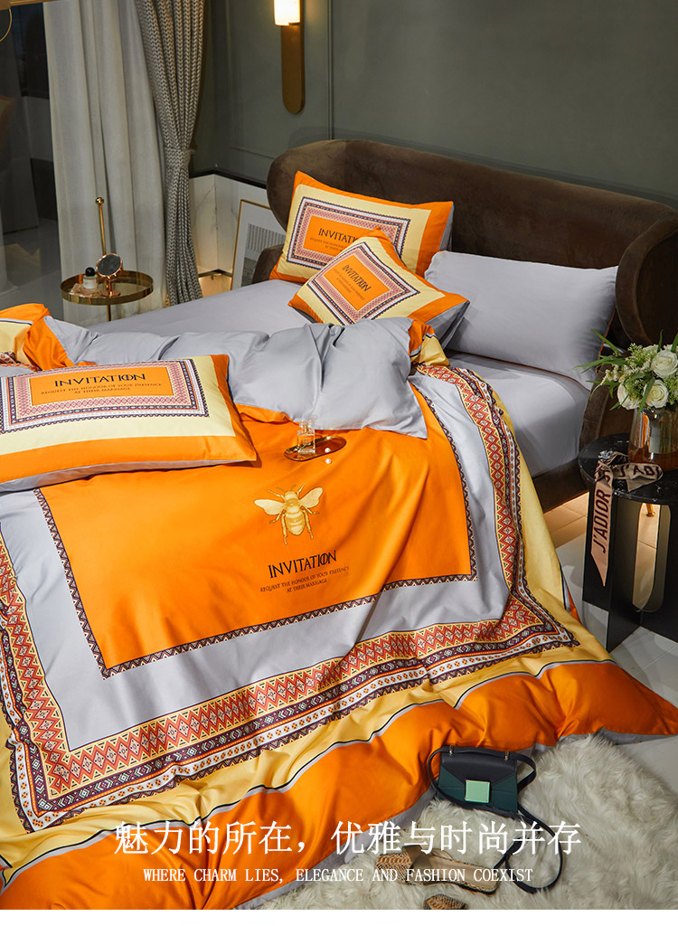 凡客 2022春夏新款60S贡缎长绒棉印花四件套 摩登夜曲