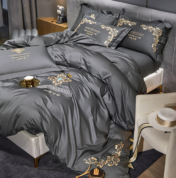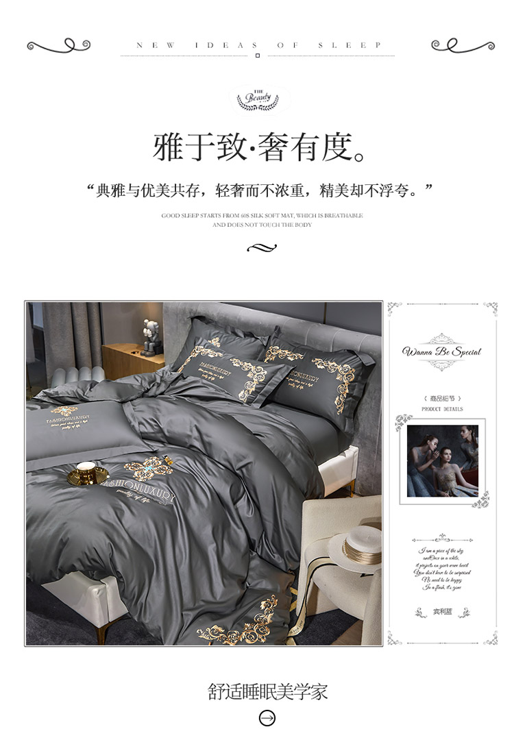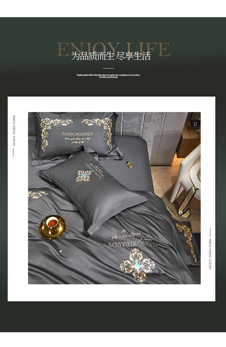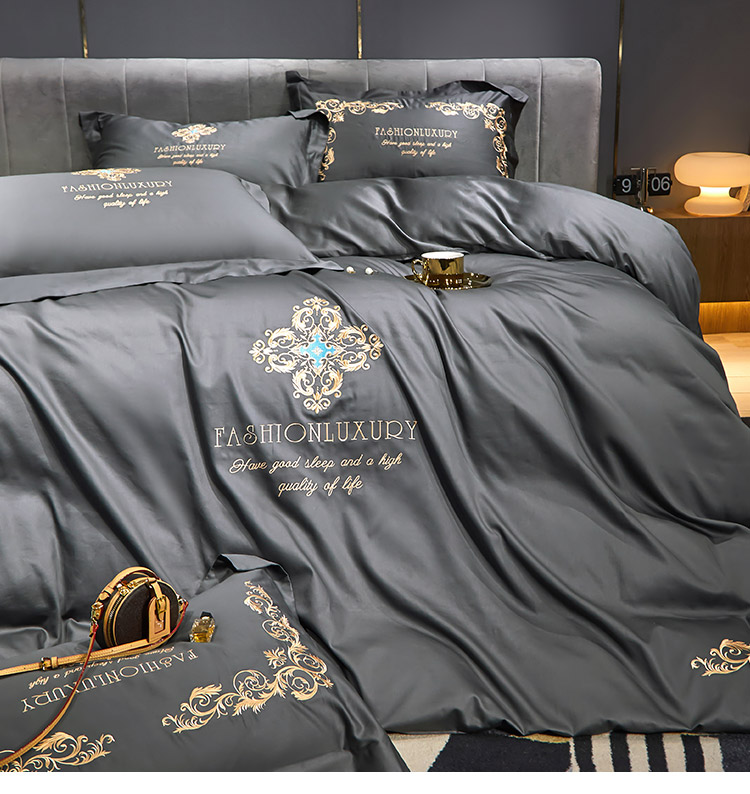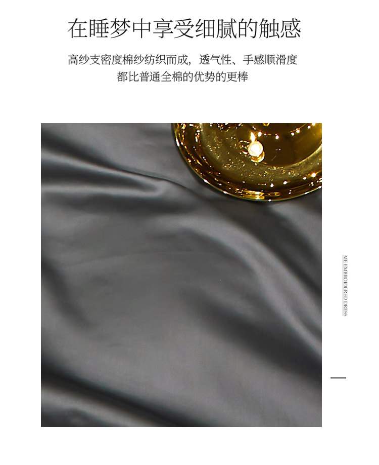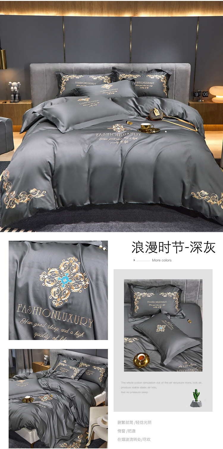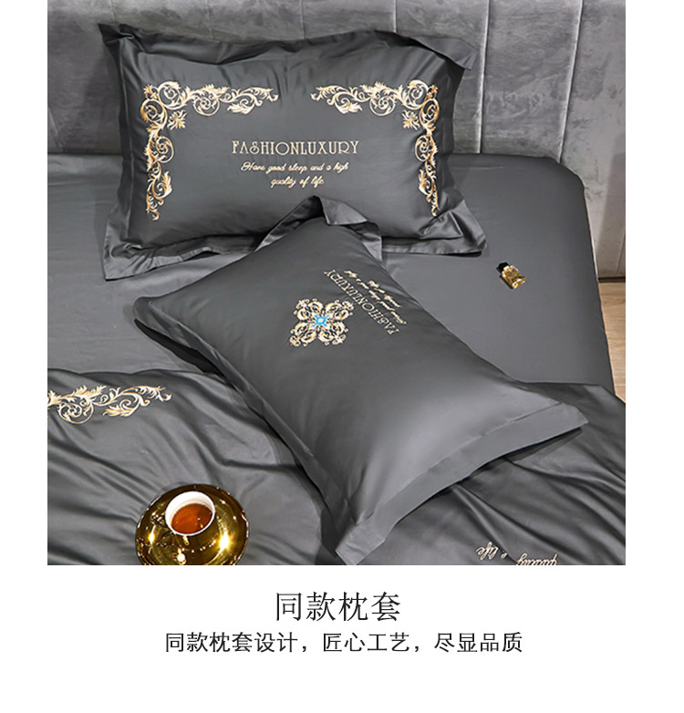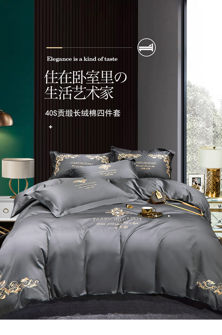商品名称:凡客2022春夏新款浪漫时节60S贡缎长绒棉绣花四件套 浪漫时节(深灰)