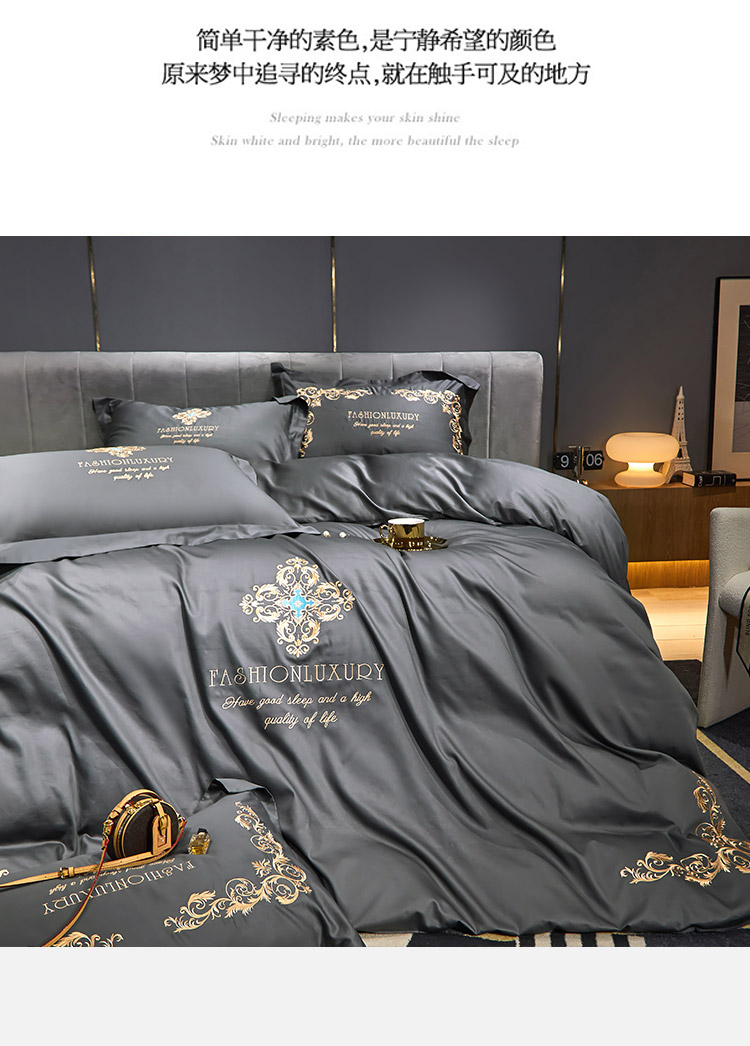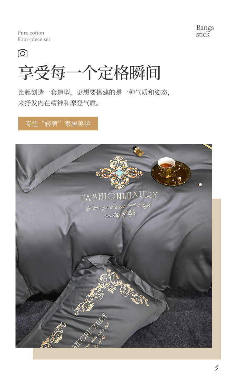 凡客2022春夏新款浪漫时节60S贡缎长绒棉绣花四件套 浪漫时节(深灰)