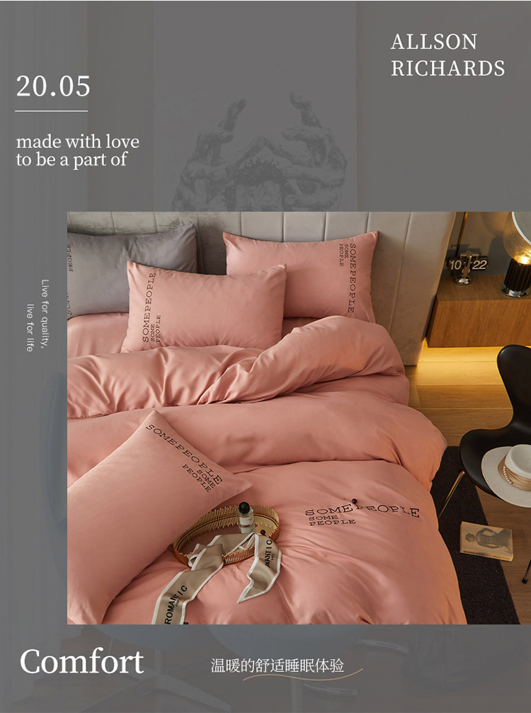 凡客2021秋冬新款贝利卡埃类棉刺绣磨毛四件套 贝利卡-粉玉