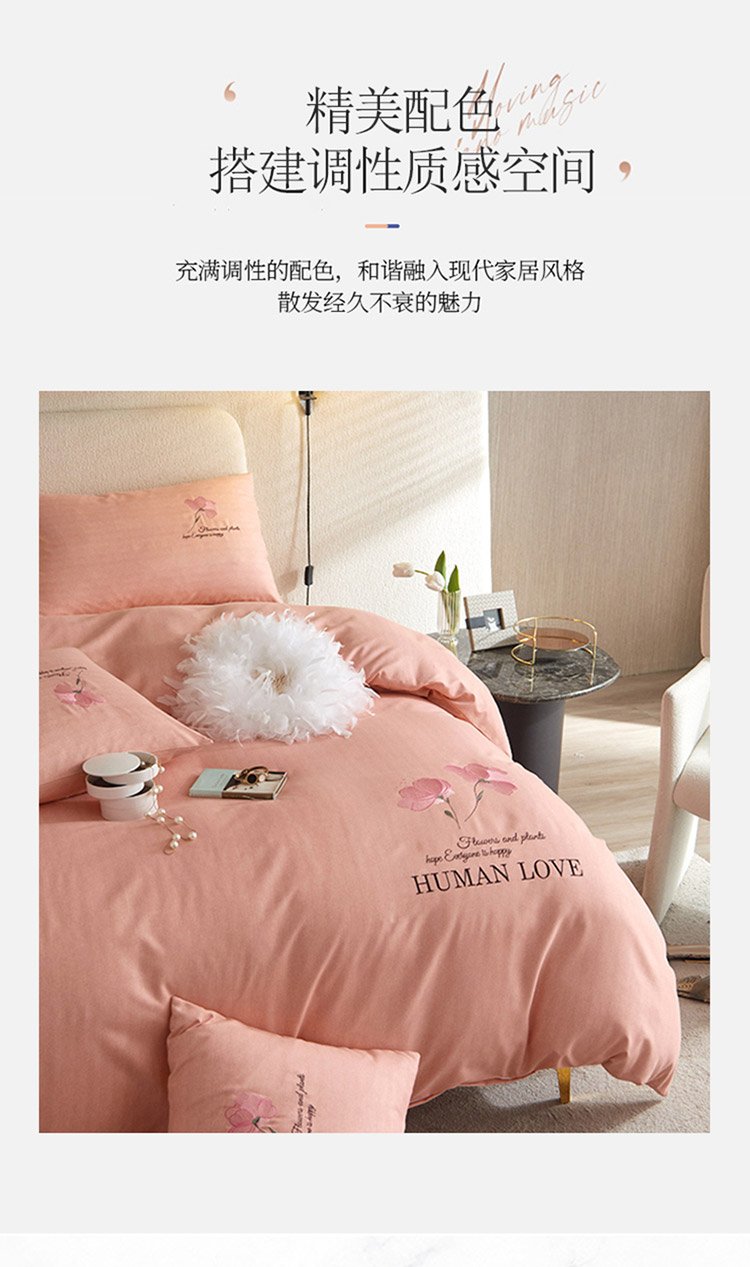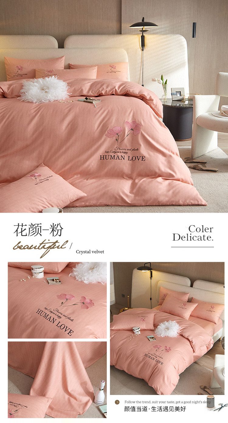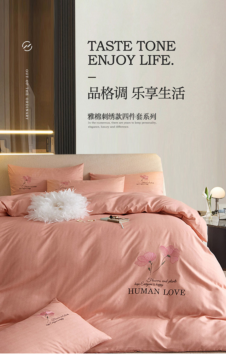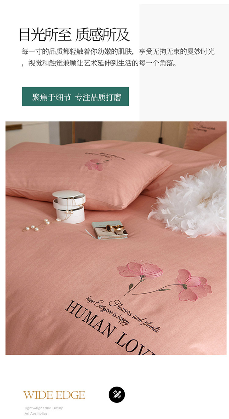 凡客 2021秋冬新款雅棉刺绣四件套-花颜 花颜-粉
