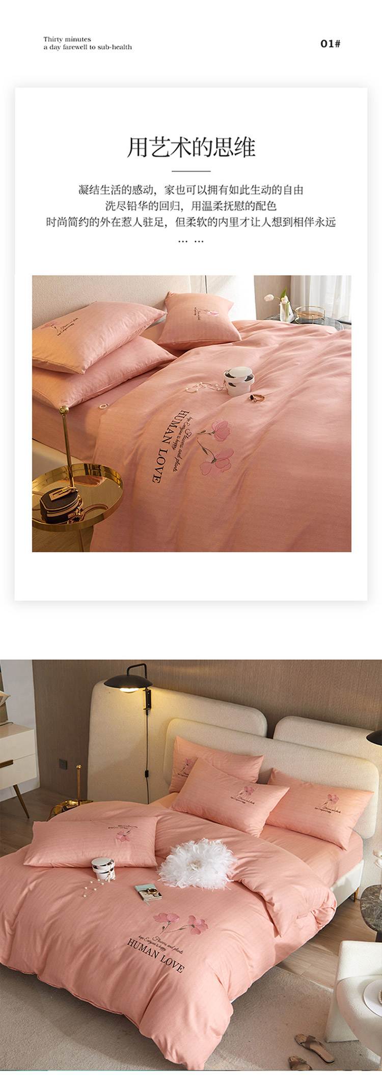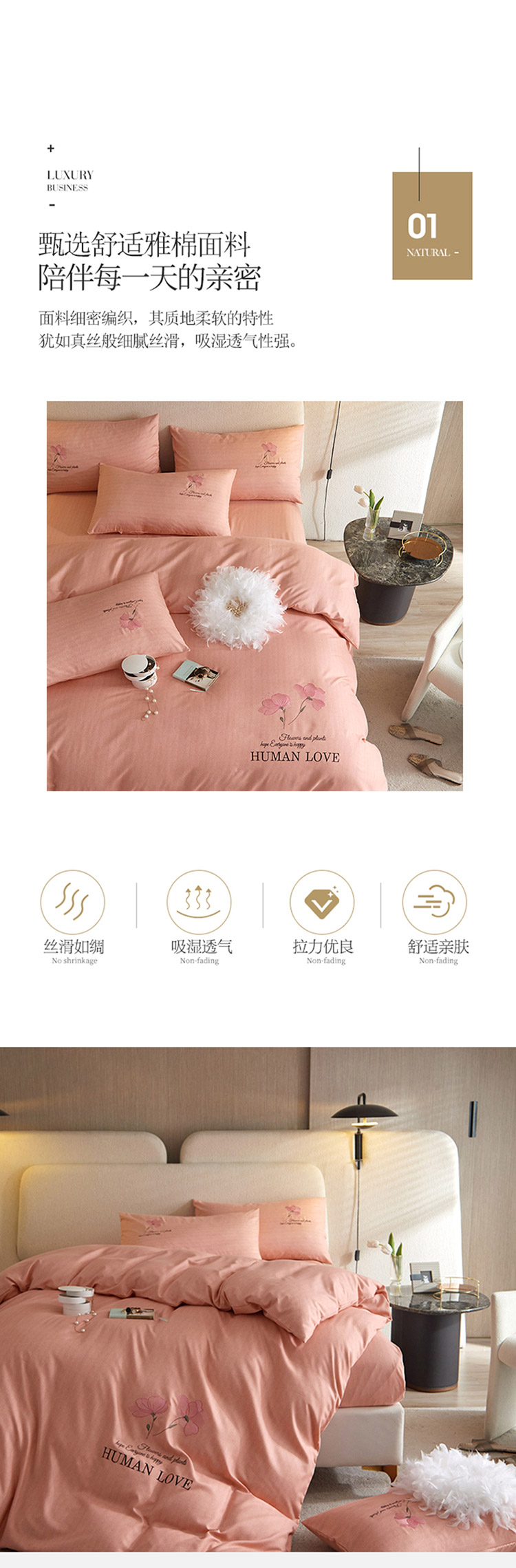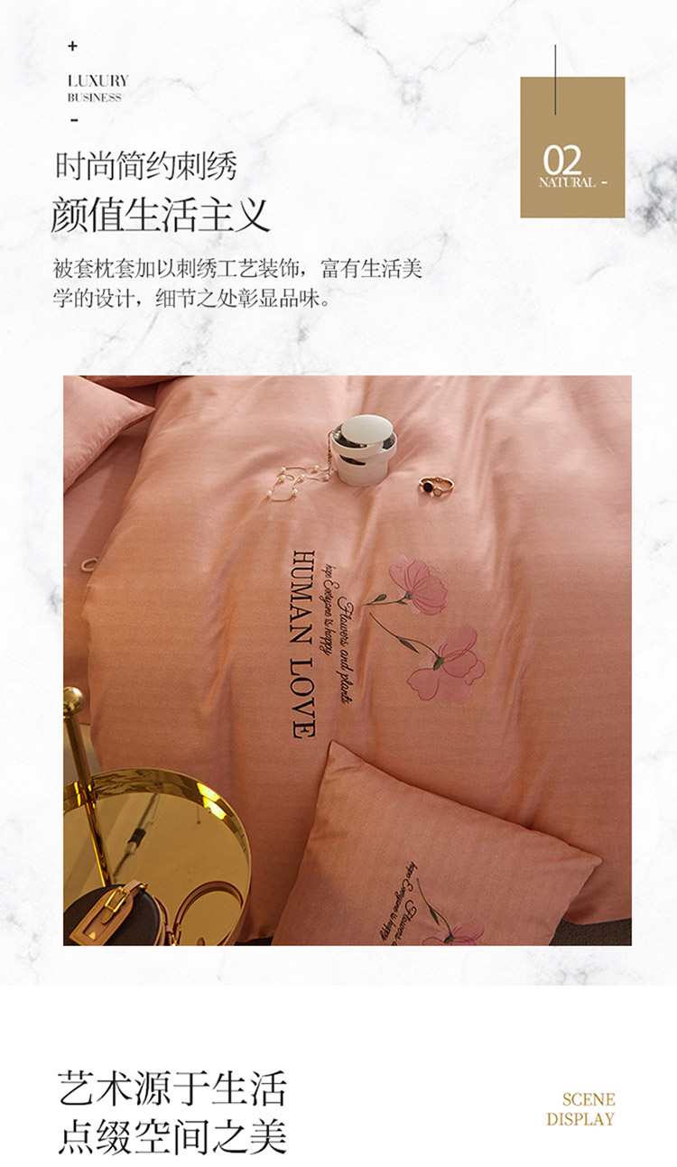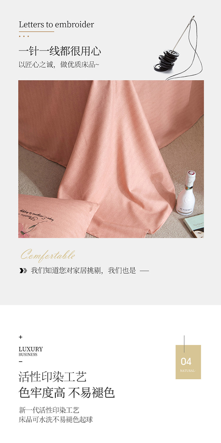 凡客 2021秋冬新款雅棉刺绣四件套-花颜 花颜-粉