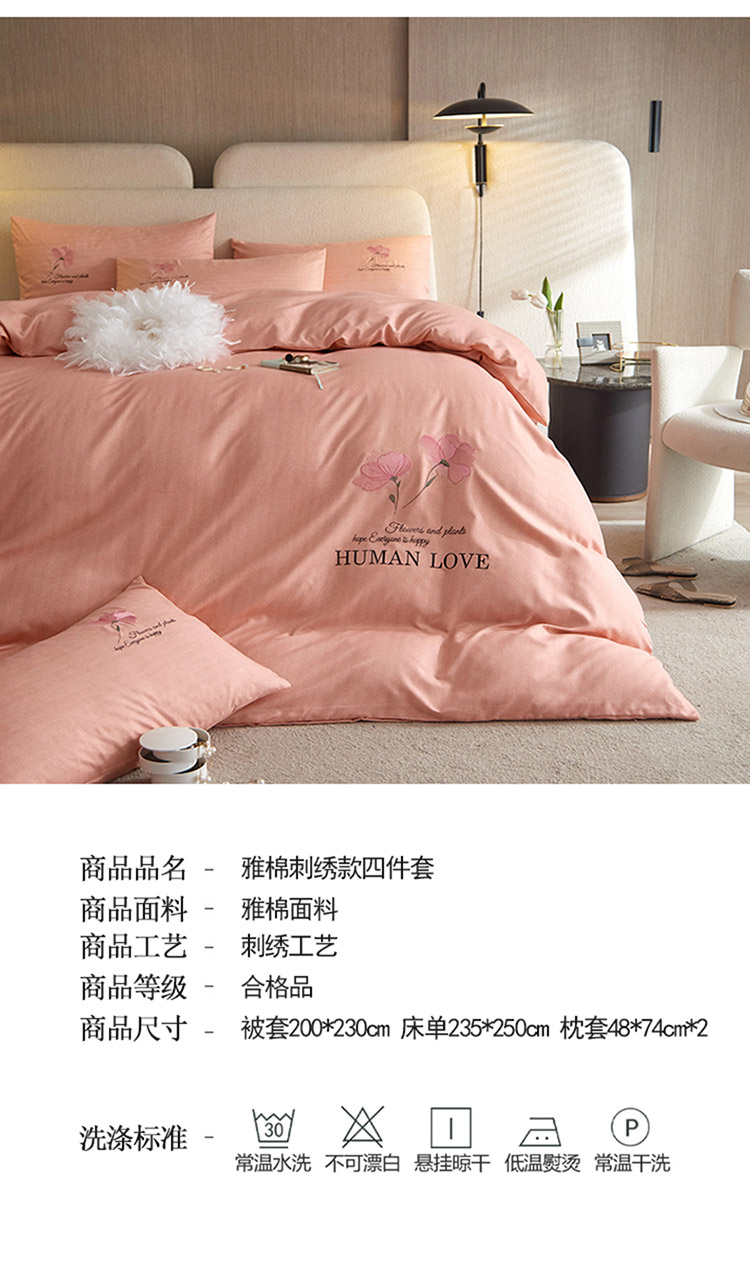 商品名称:凡客 2021秋冬新款雅棉刺绣四件套-花颜 花颜-粉