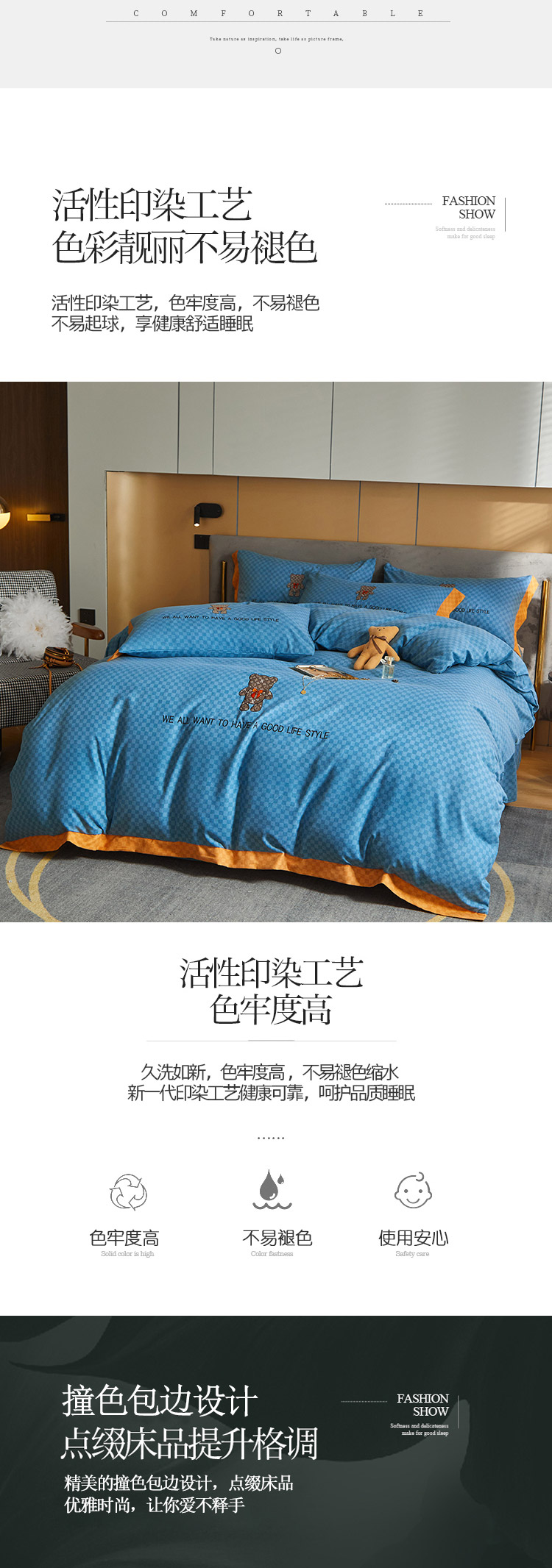3、通州区市场监督局友情提醒,近期涉及到床上用品不褪色不掉毛不缩水的投诉和以世界知名品牌图案为面料的床品举报较多。请各商家自检自查,对照整改或进行下架处理。