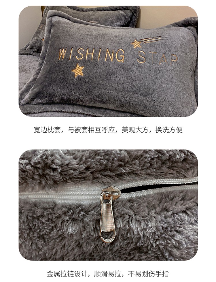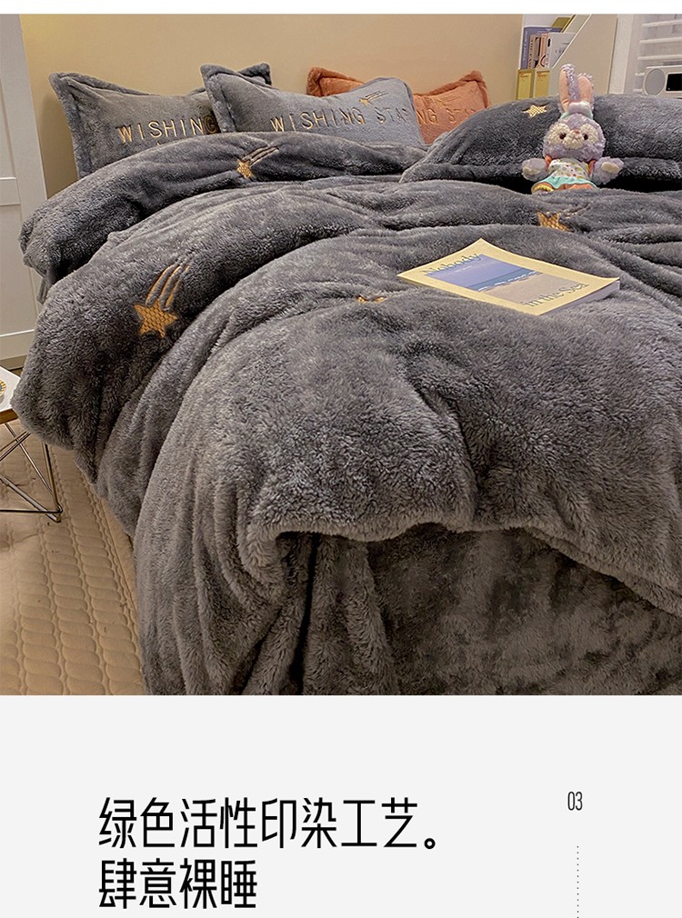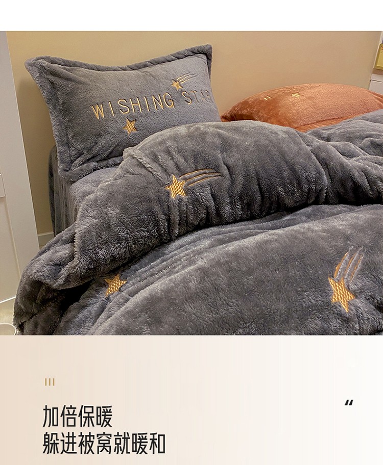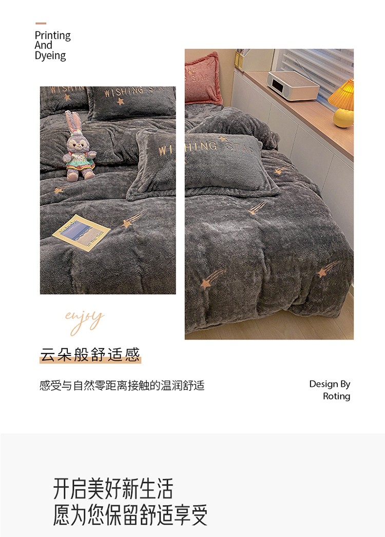 雅居纺 2022新款泰迪绒绣花四件套拍摄风格2 许愿星-深灰