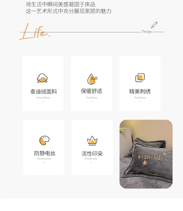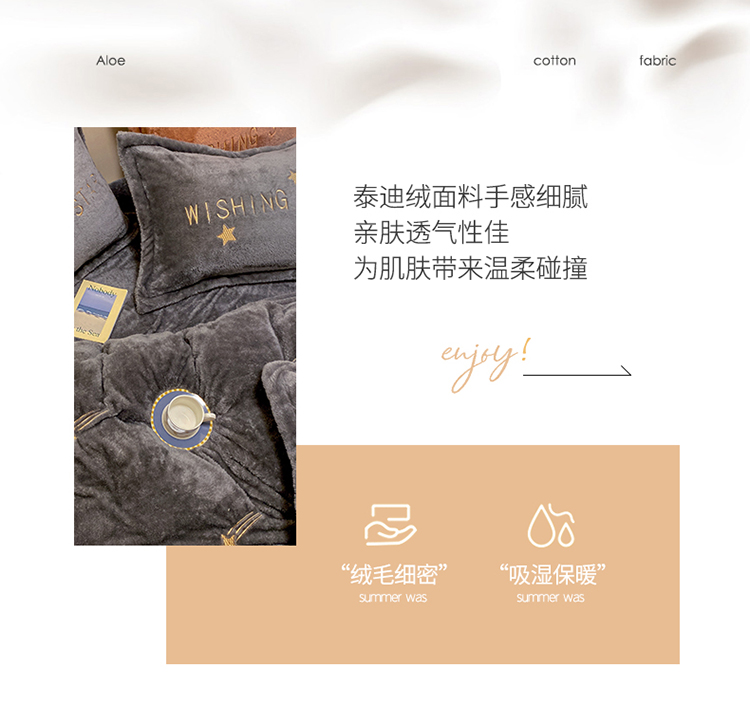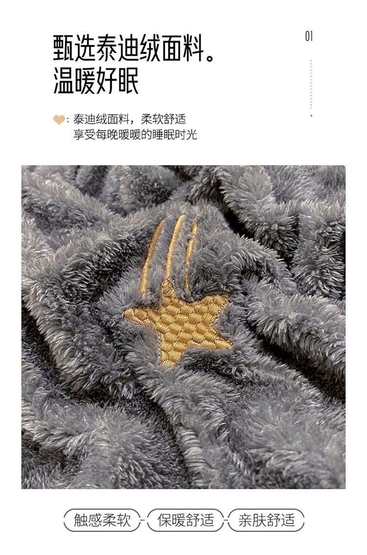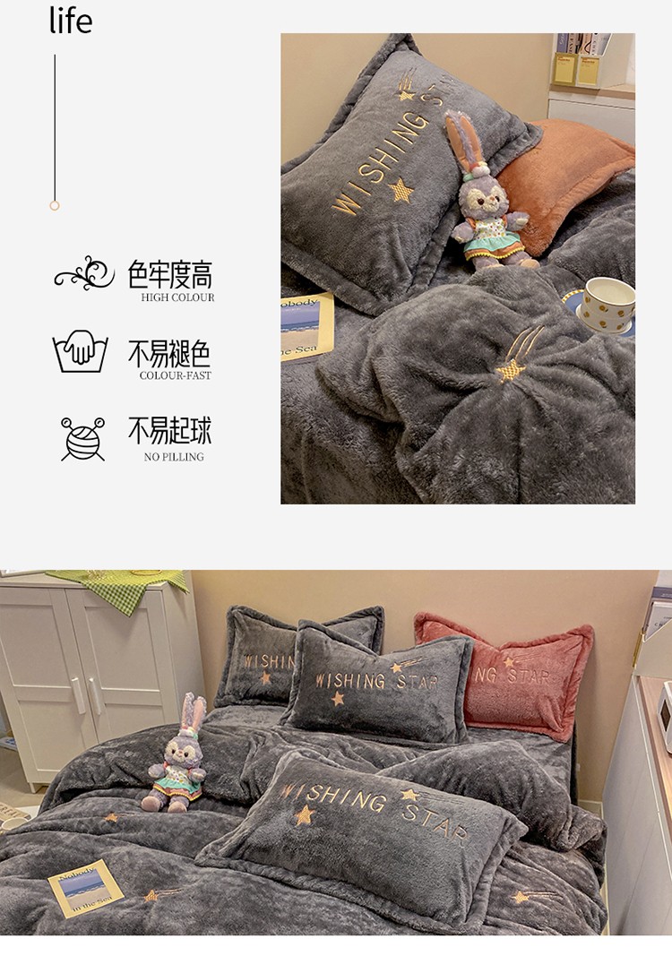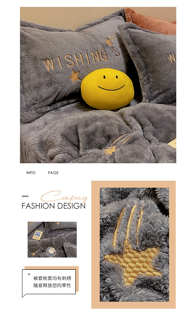 雅居纺 2022新款泰迪绒绣花四件套拍摄风格2 许愿星-深灰