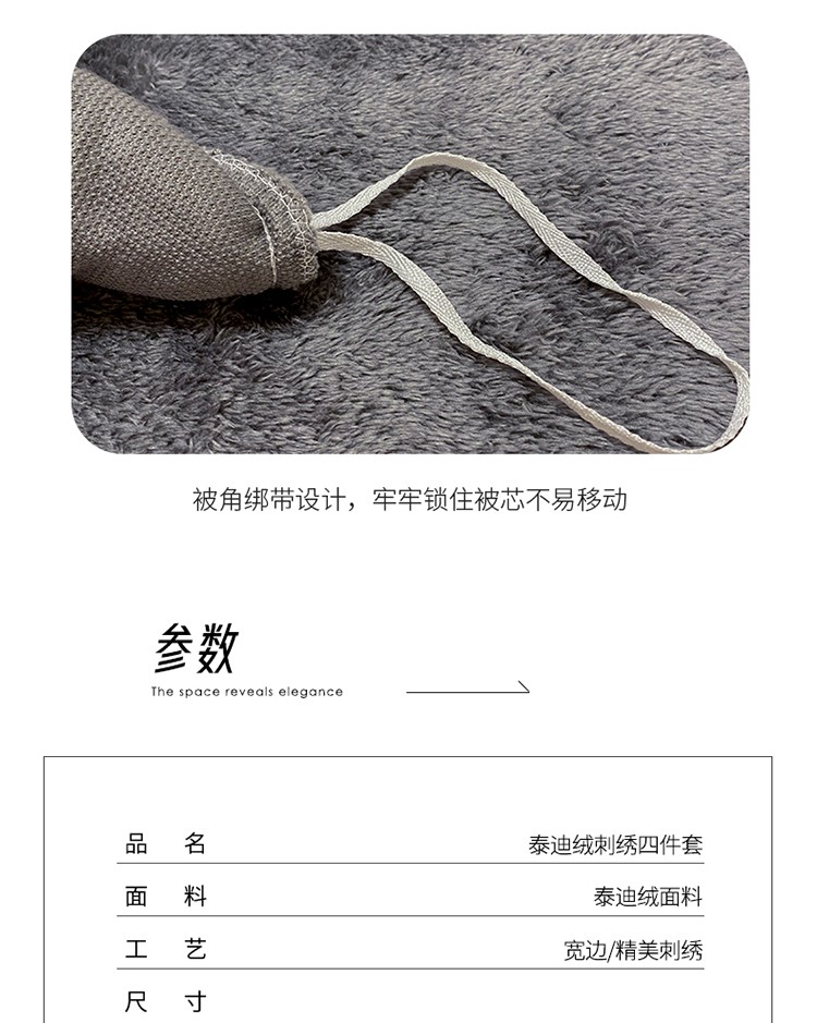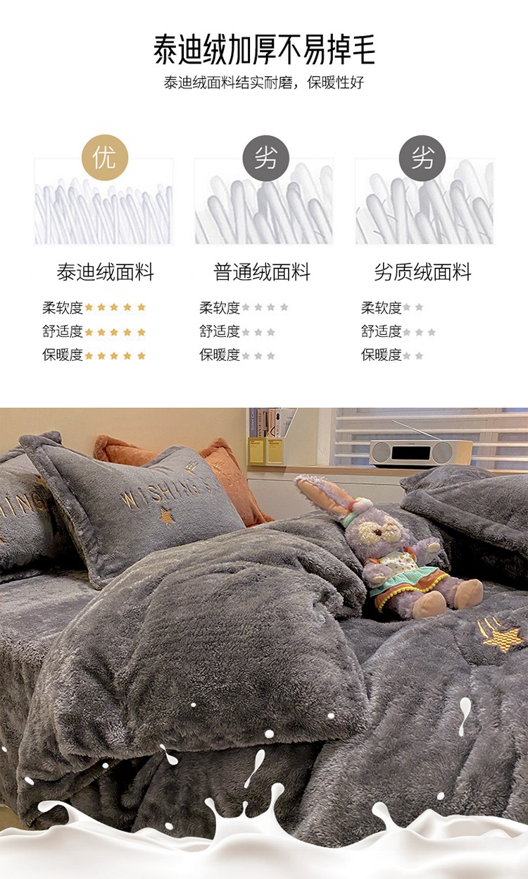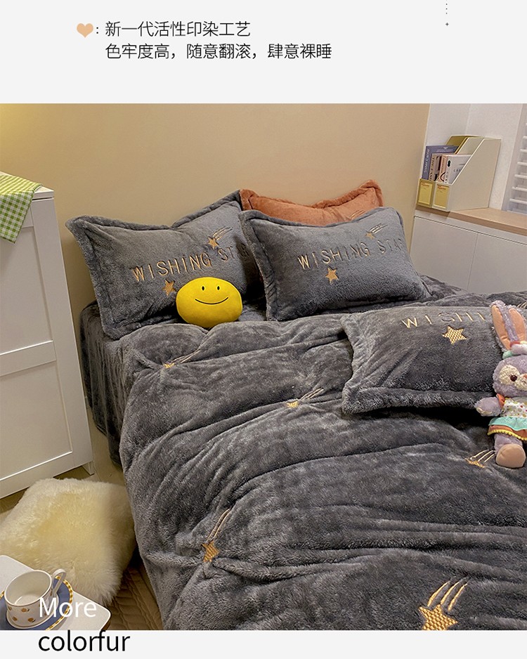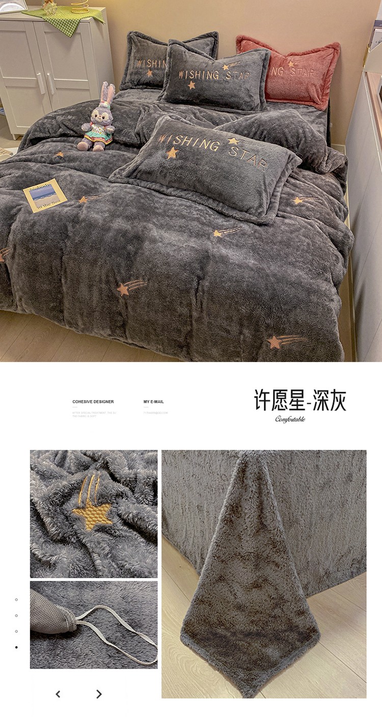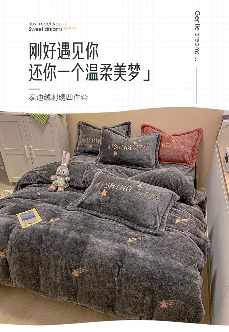 商品名称:雅居纺 2022新款泰迪绒绣花四件套拍摄风格2 许愿星-深灰