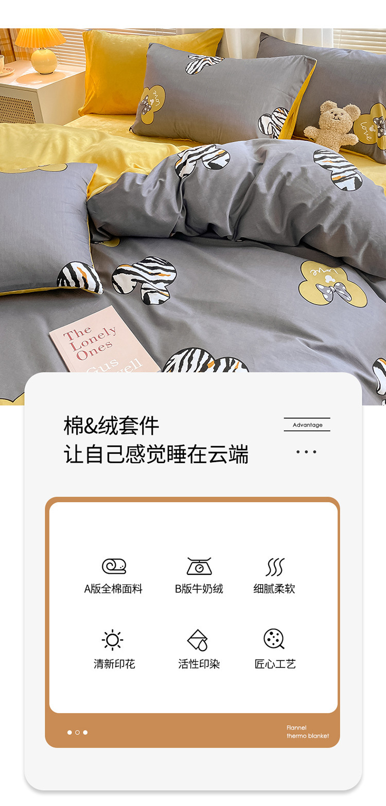 商品名称:2022新款全棉+水晶绒四件套 乐园-灰