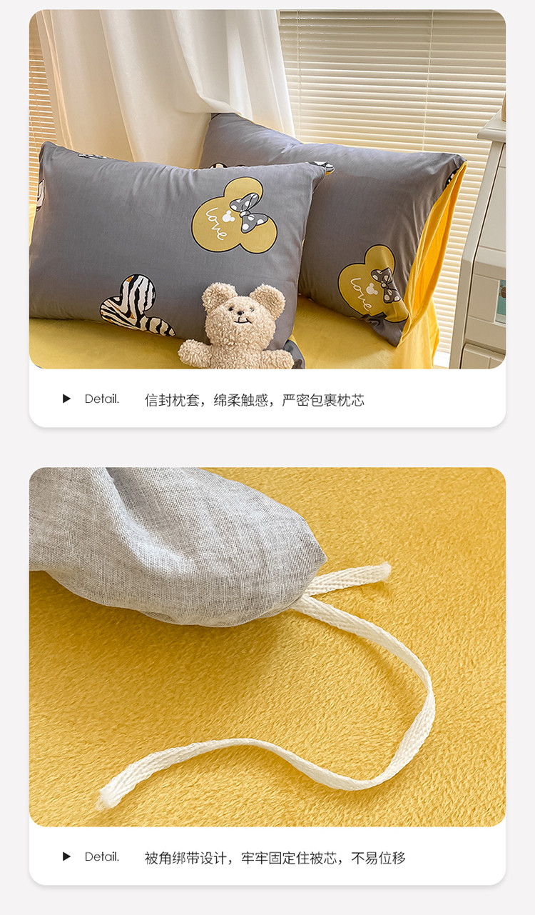(总)雅居纺家纺 2025新款简约兔绒球球保暖舒适四件套-波点,波点-白咖,波点-粉黄,波点-咖,波点-蓝黄