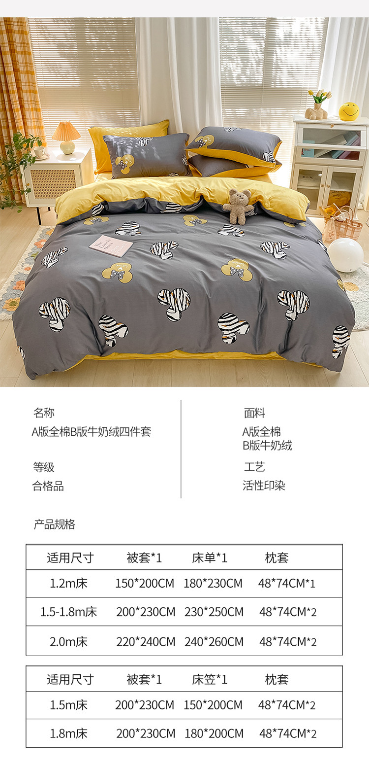 (总)雅居纺家纺 2025新款高克重牛奶绒印花四件套,M粉,爱心恐龙,粉粉桃,粉色竖条,乖乖兔,蝴蝶结-粉,蝴蝶结-蓝,幻境-粉,简约绿条,经典豹纹,咖色竖条,开心龙,蓝墨花朵,蓝色竖条,蓝色小兔,蓝条猫咪,浪漫花香,秘境小兔,时尚爱心,树叶小兔子,竖条小花,四宫格,仙草,小煤球,幸运兔,休闲小兔,宇航熊