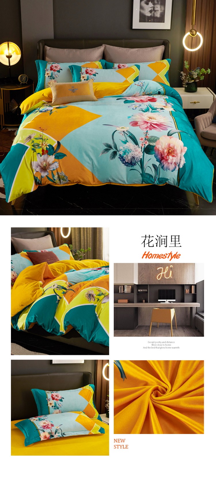 商品名称:ds生活馆2021新款奢系列数码印花水晶绒牛奶绒四件套 花涧里