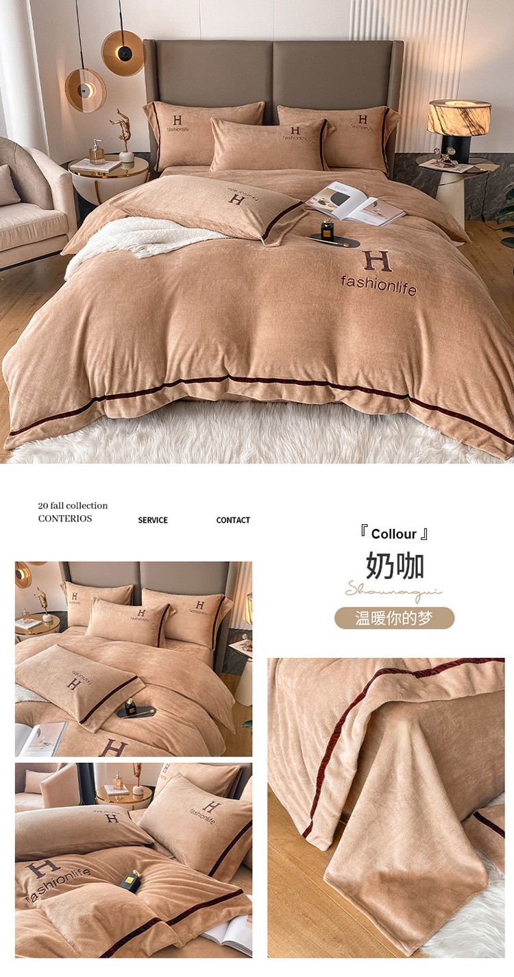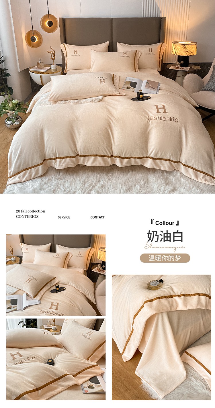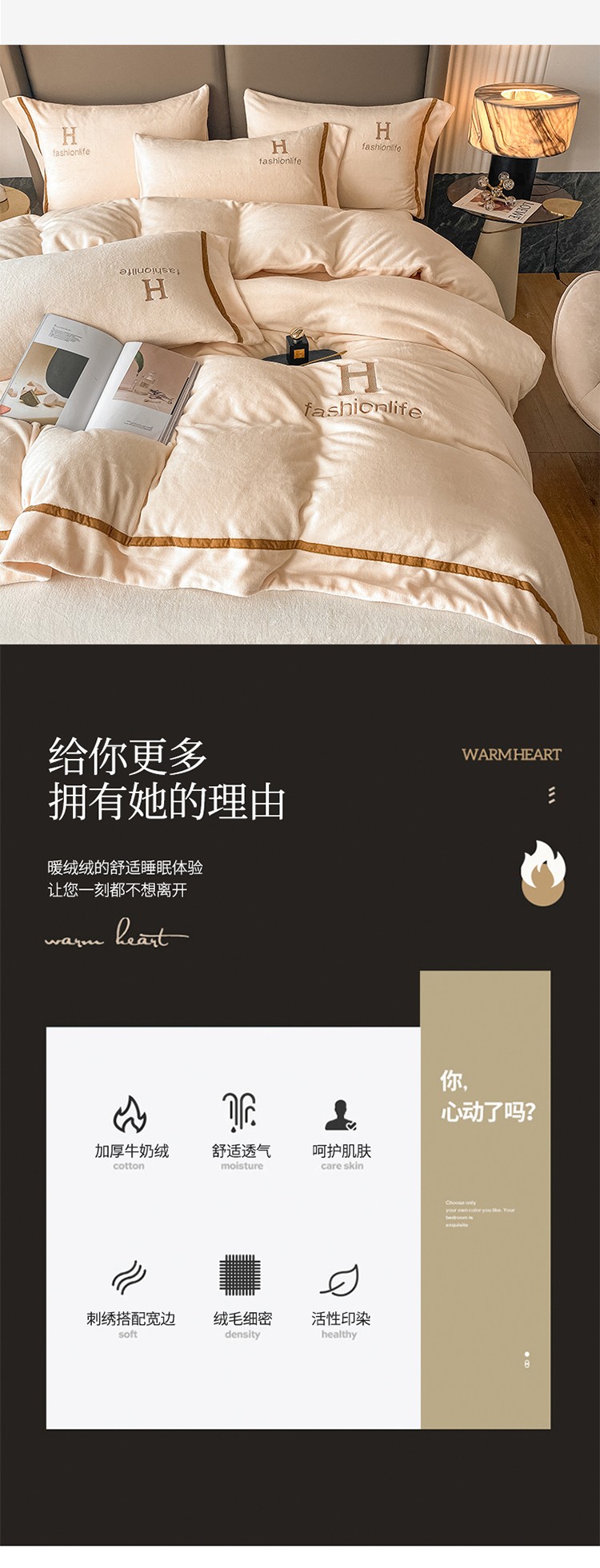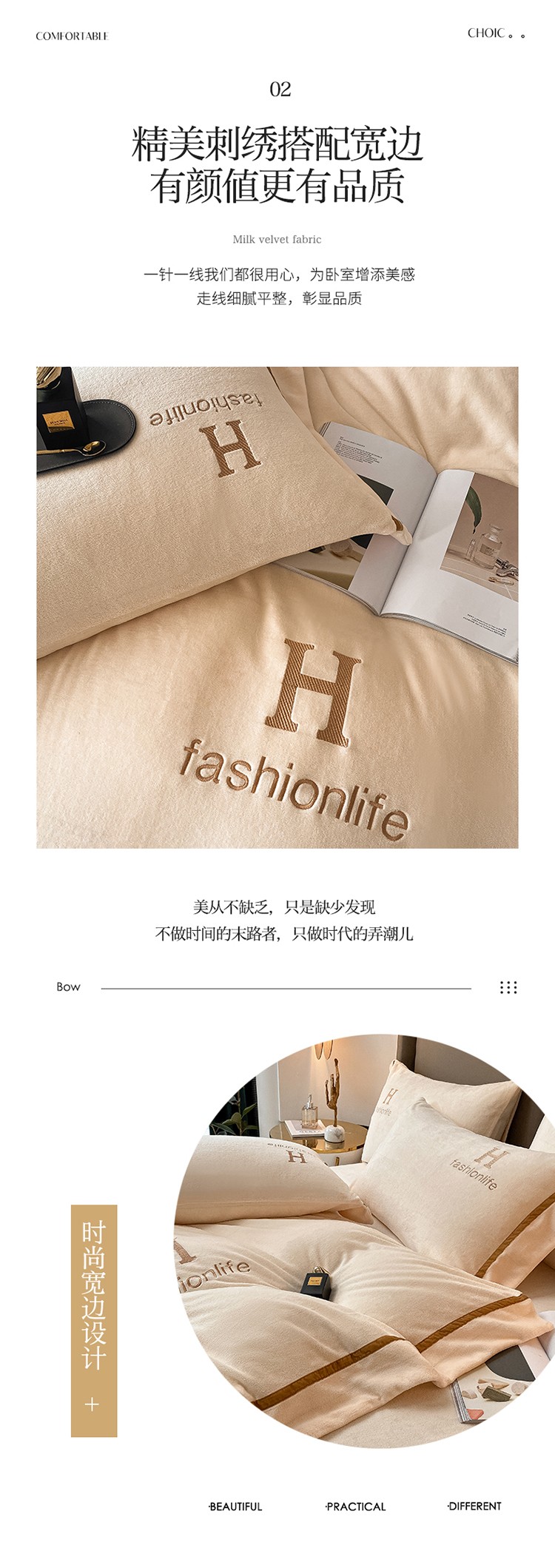 商品名称:(总)米彩家纺2023新款加厚牛奶绒刺绣H款四件套