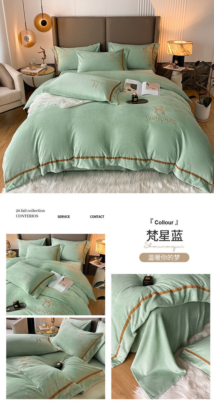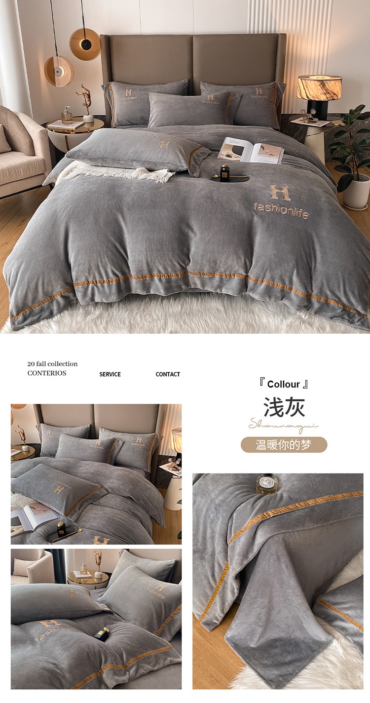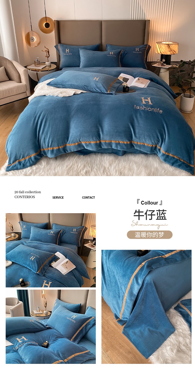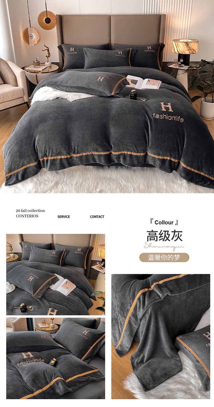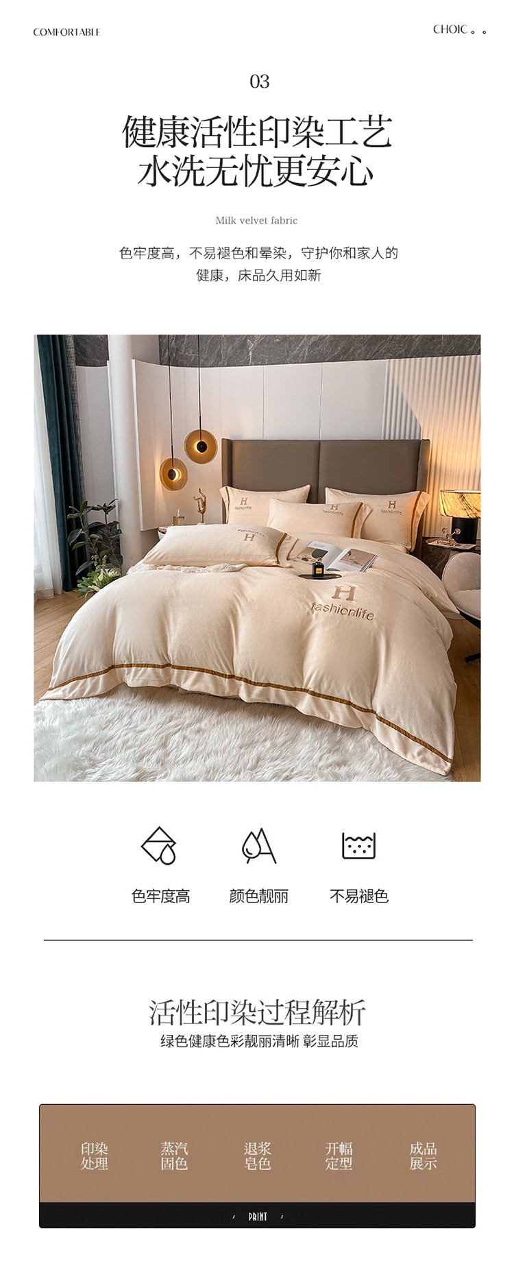 商品名称:(总)米彩家纺2023新款加厚牛奶绒刺绣H款四件套