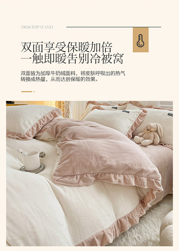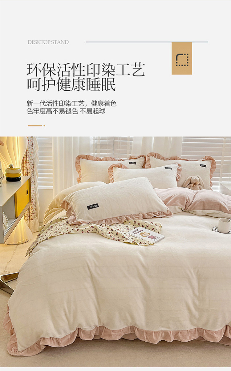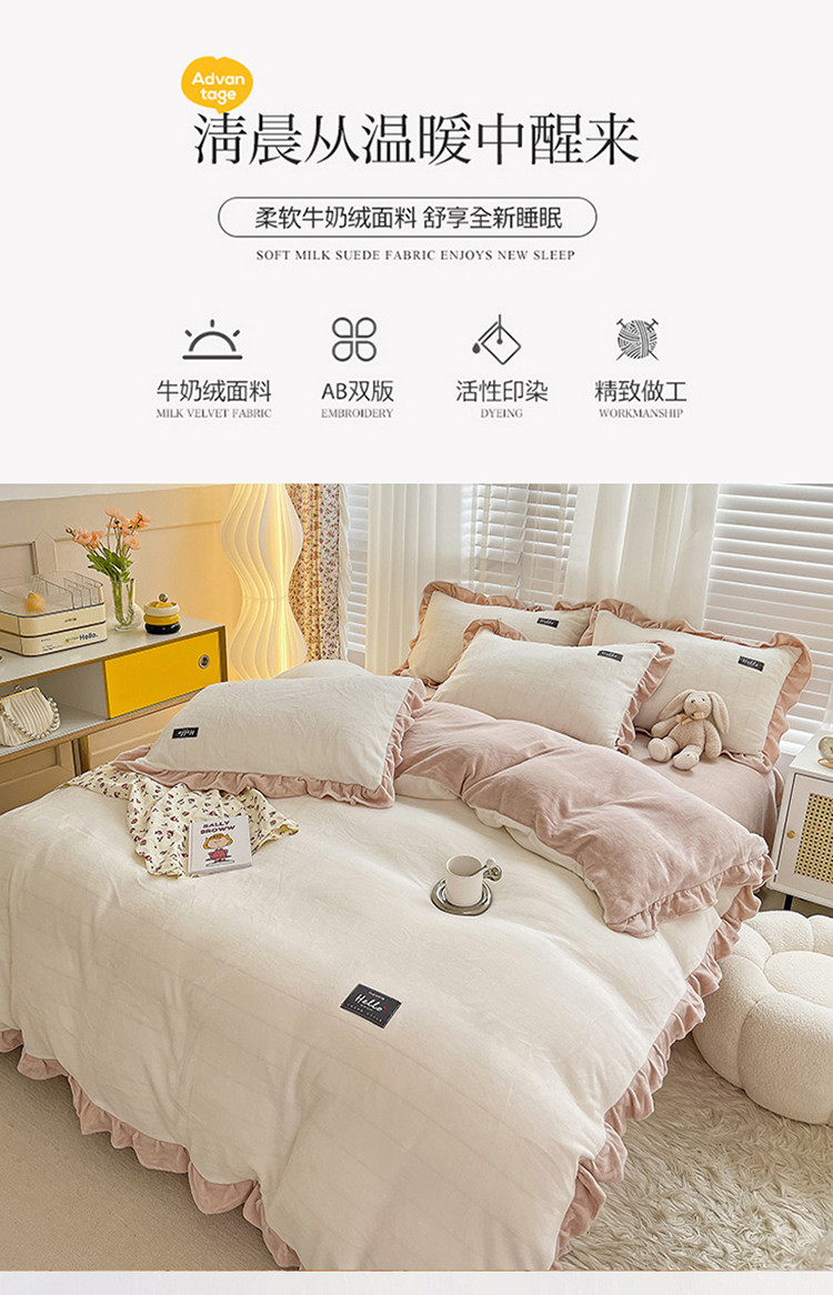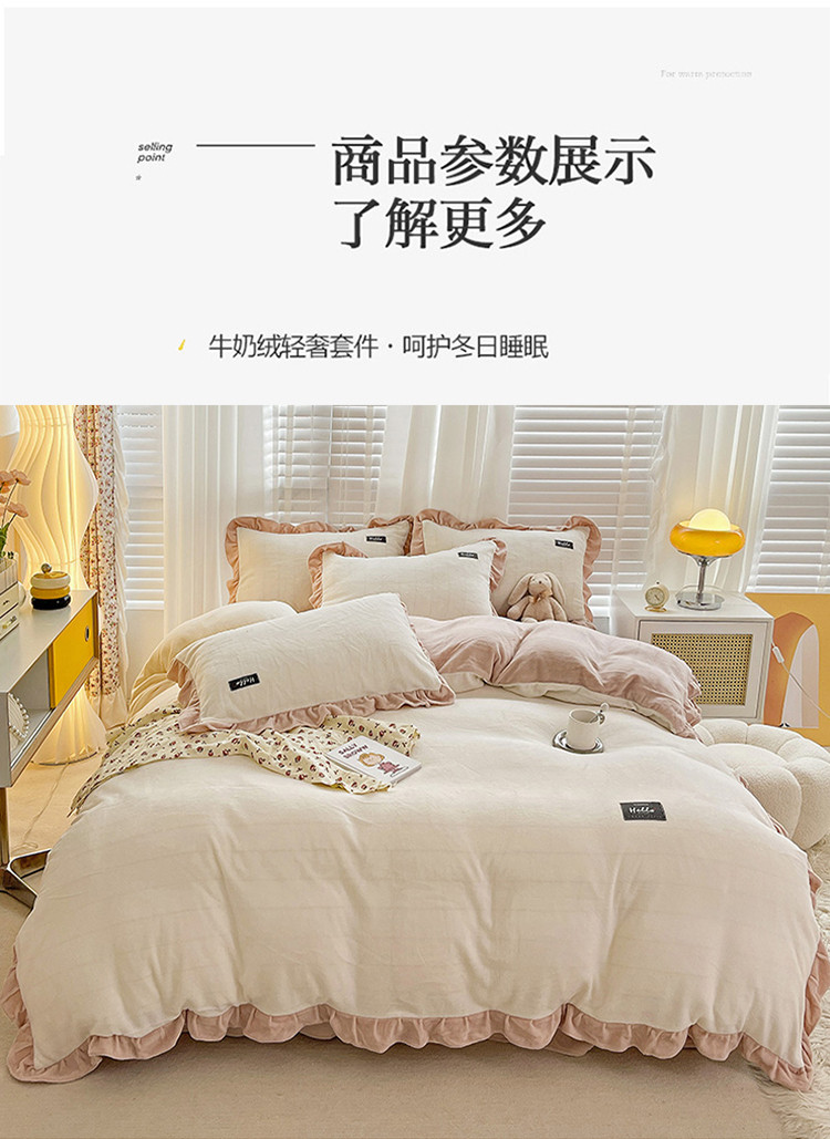 商品名称:雅萱2022新款230g高克重贴标素色牛奶绒轻奢四件套 粉白