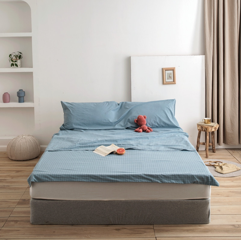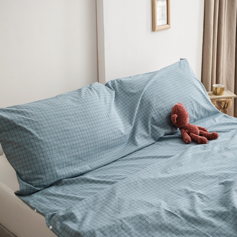 商品名称:安莱生活 2021新款全棉水洗棉色织睡袋 雾蓝小格