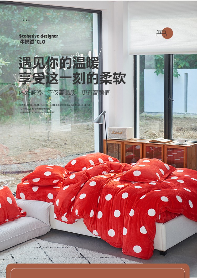 (总)艾佳 2025新款牛奶绒金典黑白四件套 风格一,红圆点,牛奶绒奶糖块灰,牛奶绒棋盘格灰,牛奶绒圈圈灰,牛奶绒条格灰,牛奶绒温柔斑马纹灰