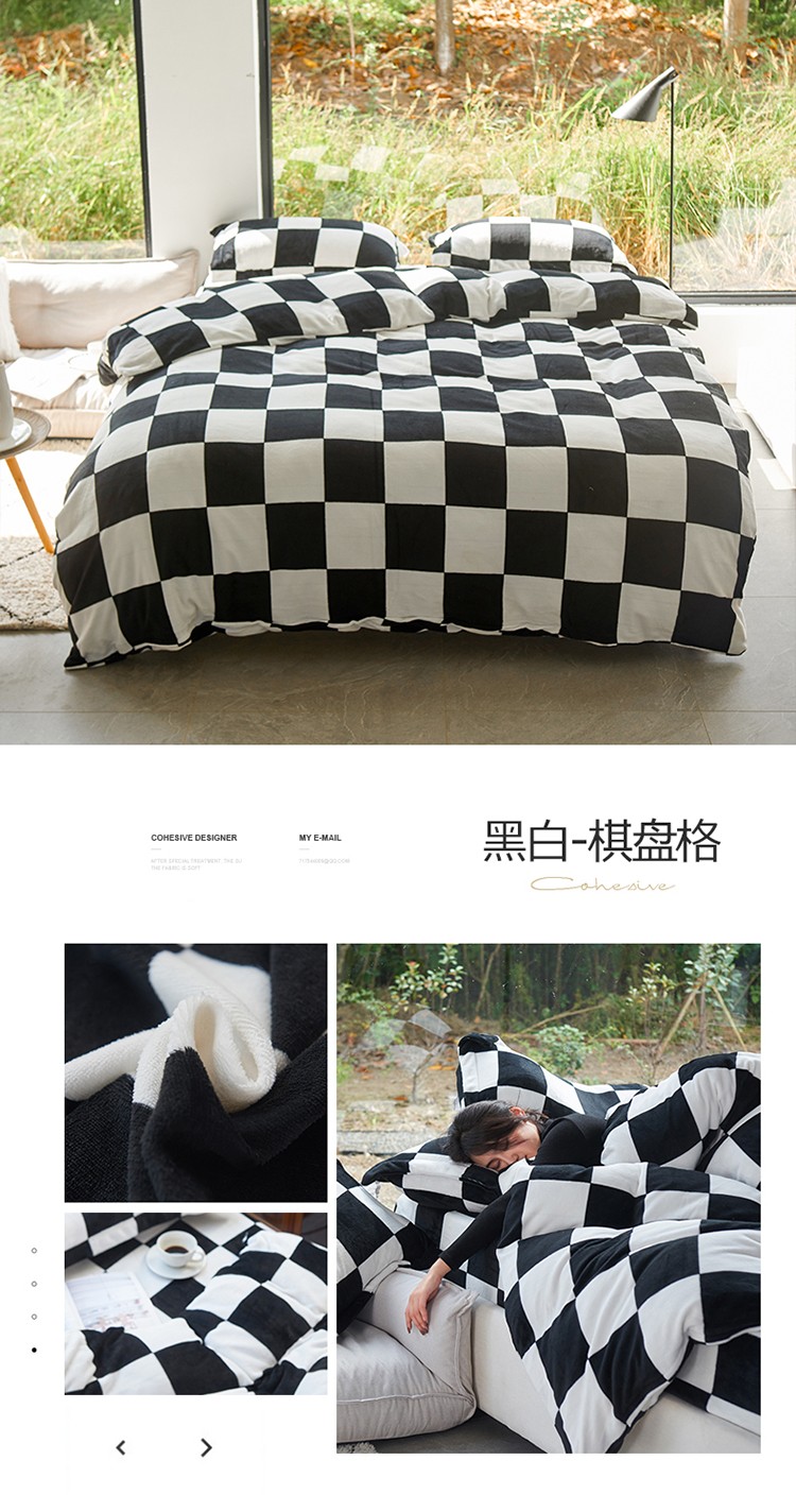 (总)艾佳 2025新款牛奶绒金典黑白四件套-风格2,黑白 爱心,黑白 斑马纹,黑白 奶牛糖,黑白 棋盘格,黑白 条纹,黑白 圆点,红圆点