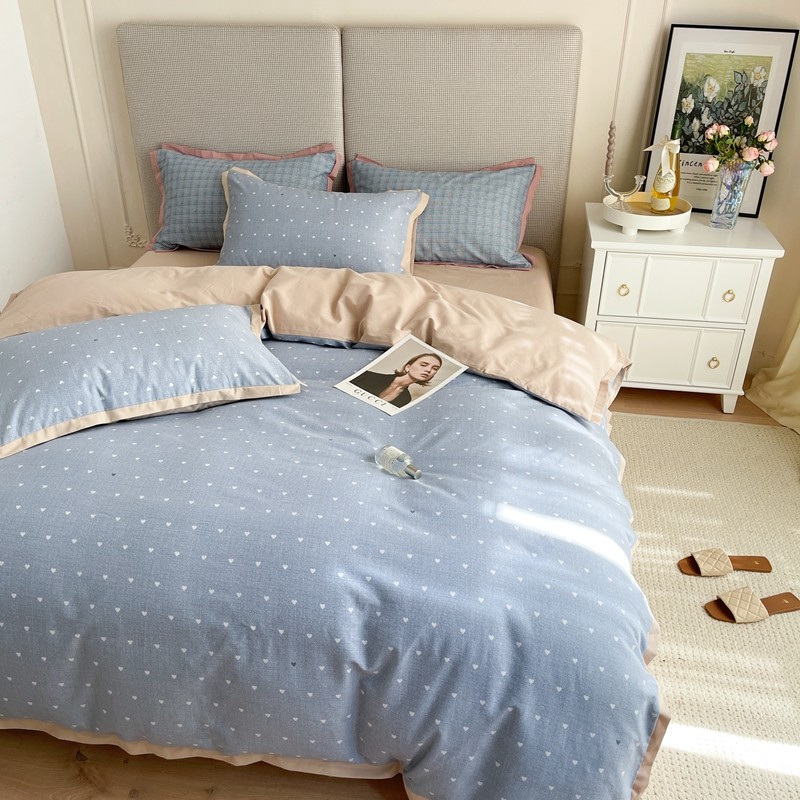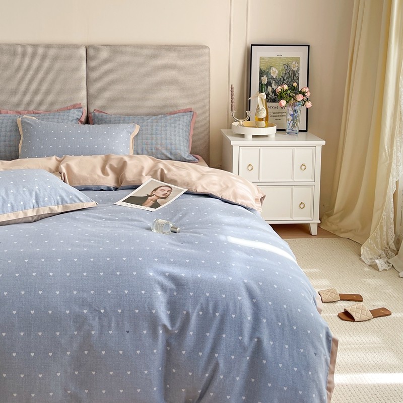 (总)时年 2022新款全棉水洗棉四件套嵌绳款,爱丽丝蓝(浅蓝),克莱因蓝(深蓝)