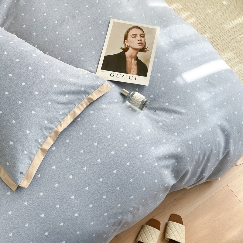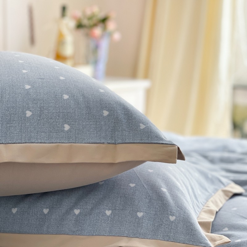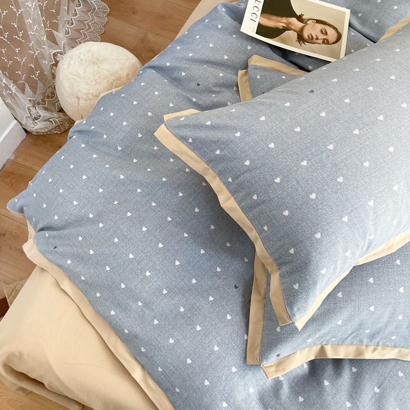 时年 2021新款全棉生态磨毛飞边款系列四件套 爱心-咖