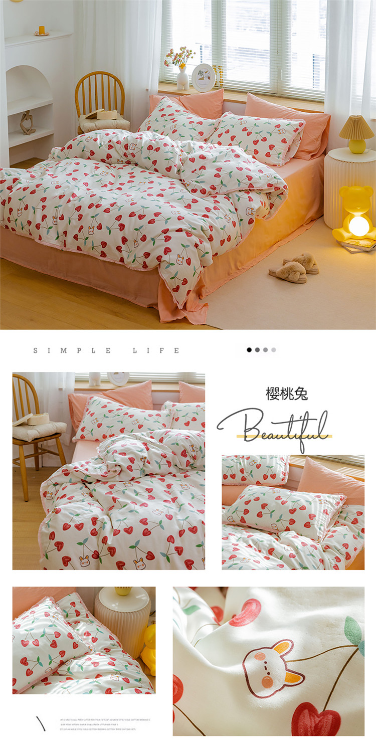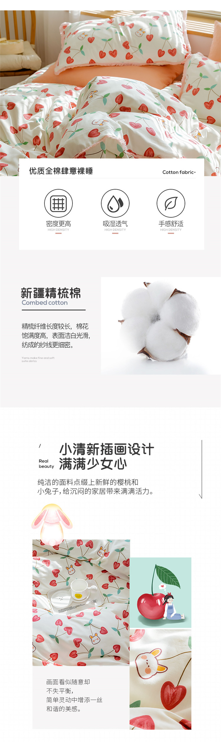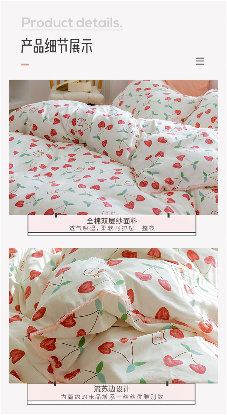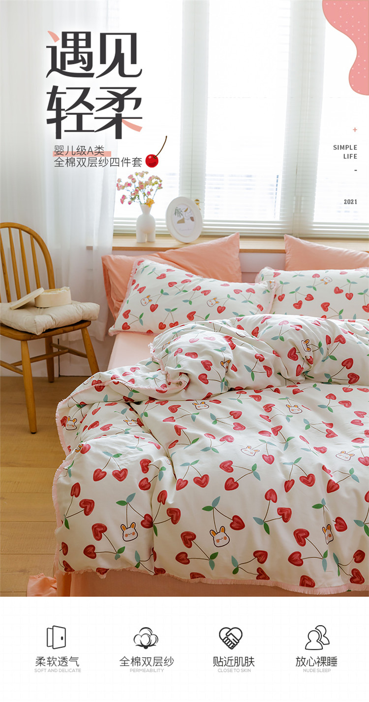 商品名称:沐辰 2021新款婴儿级A类全棉双层纱四件套 樱桃兔