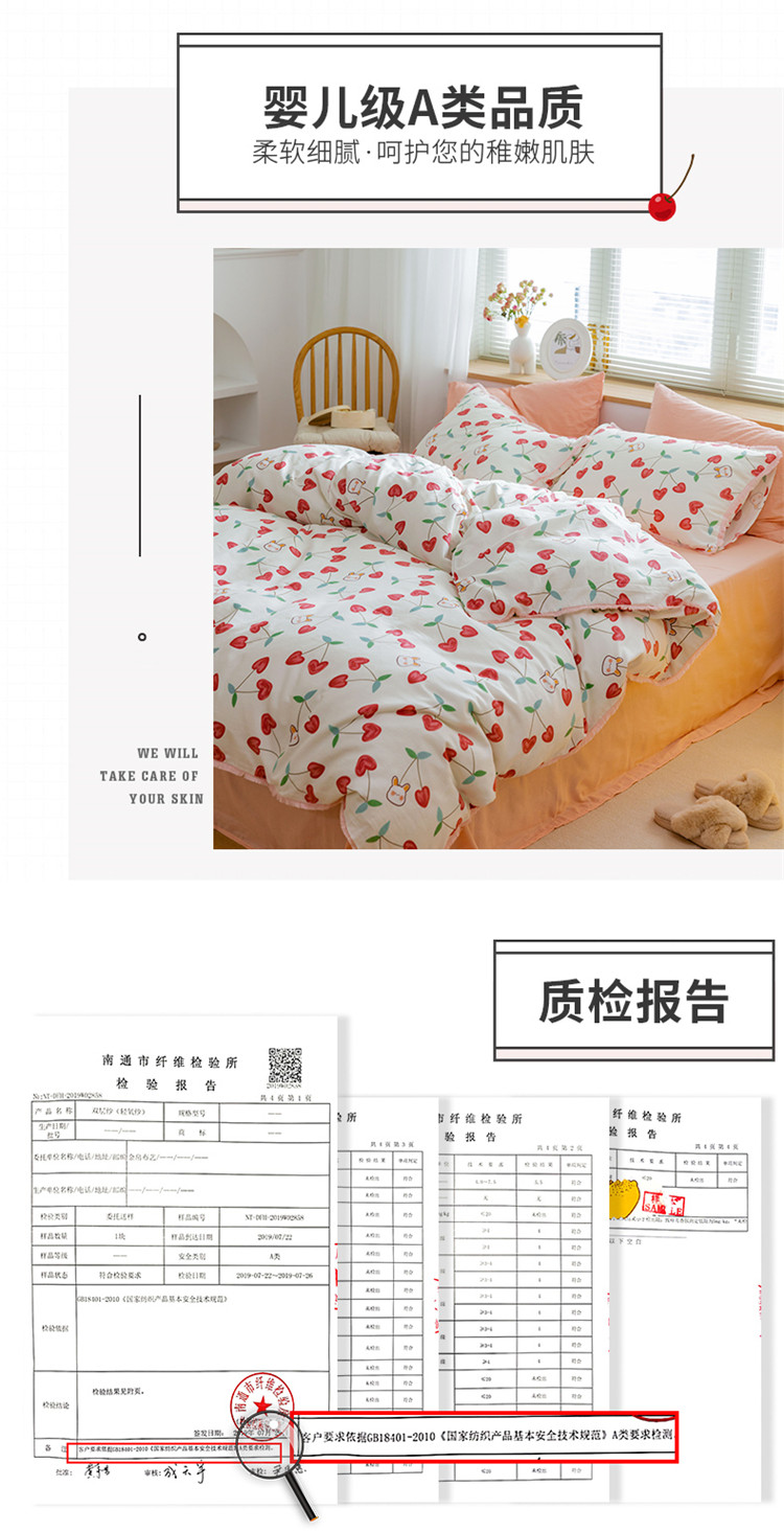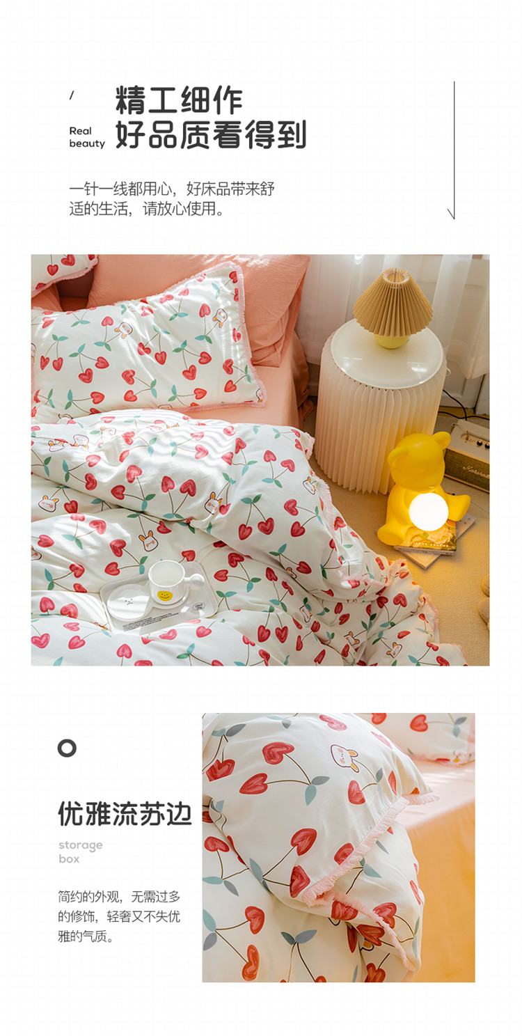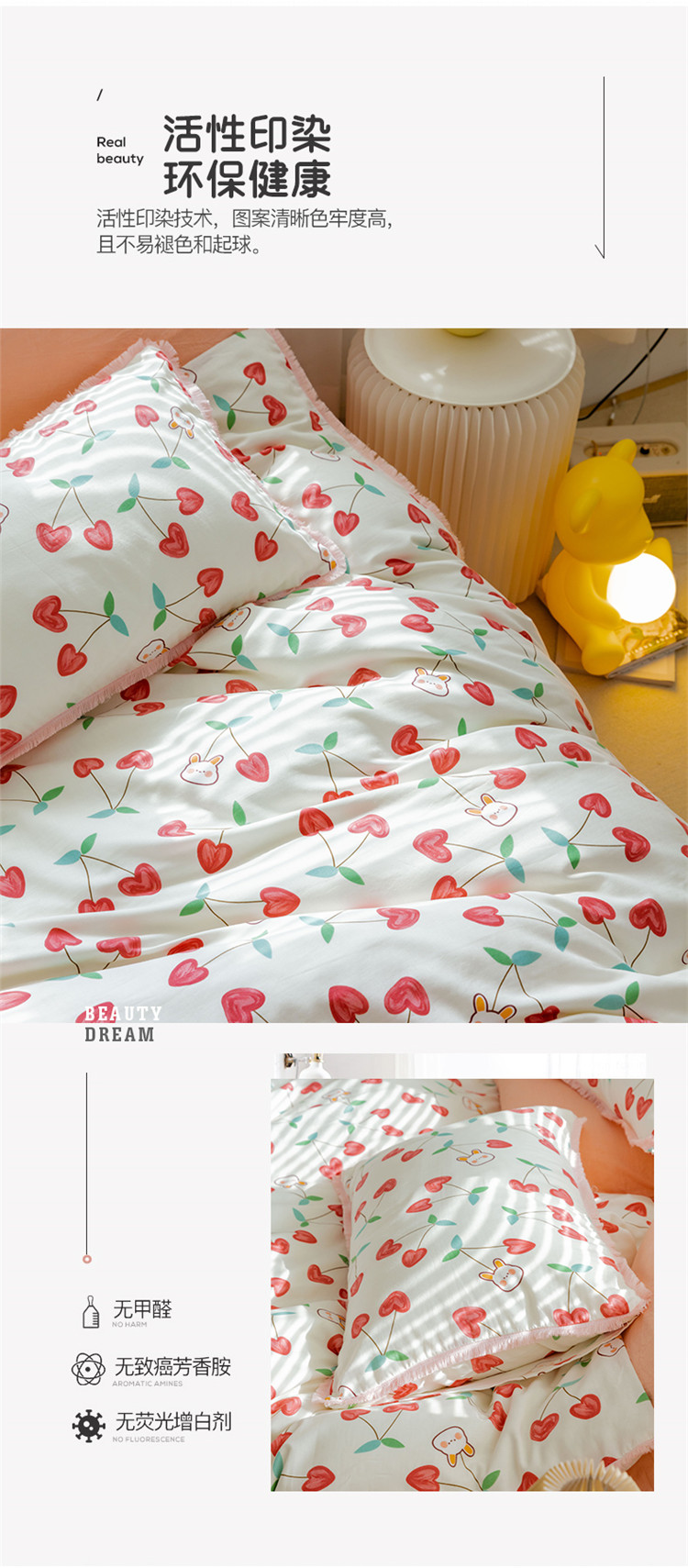商品名称:沐辰 2021新款婴儿级A类全棉双层纱四件套 樱桃兔
