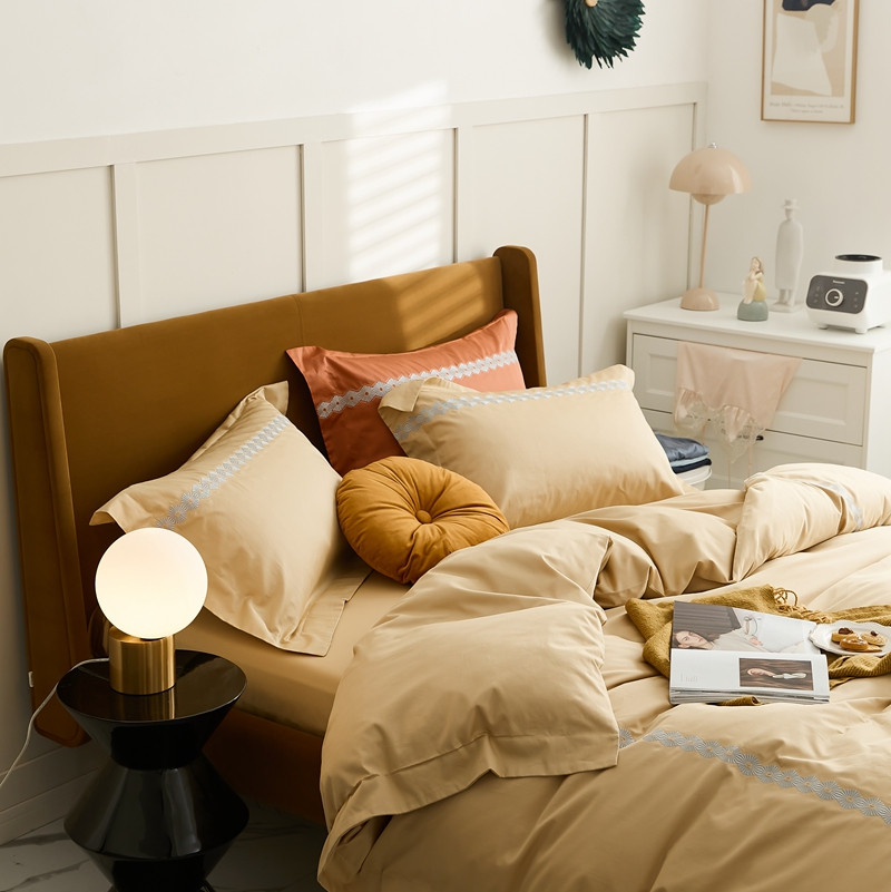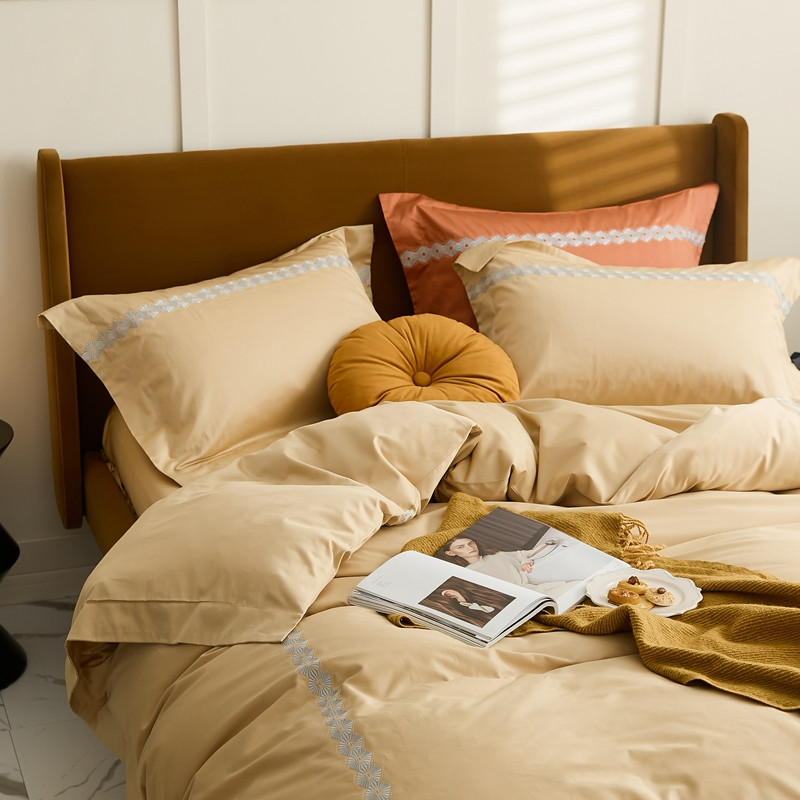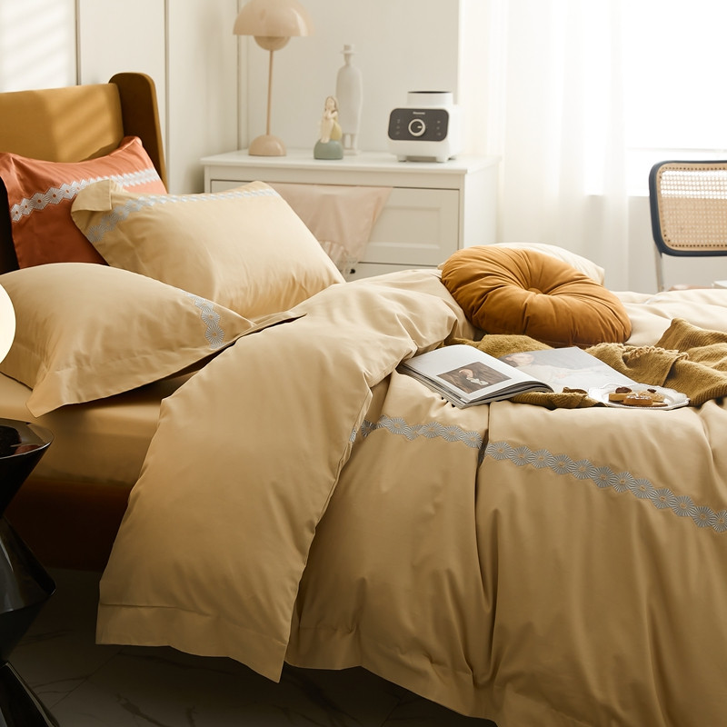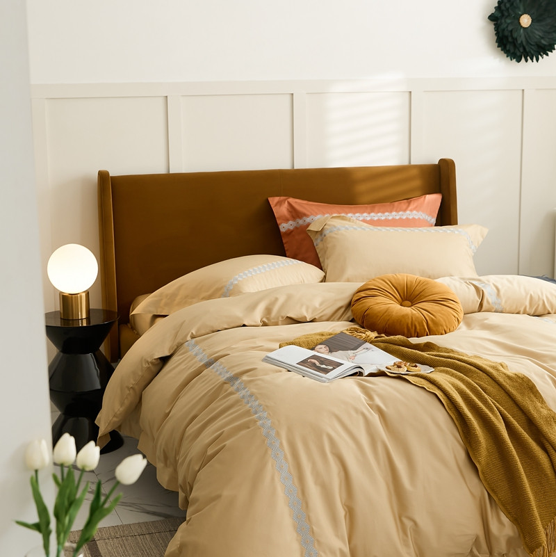 涞澳家纺 2021新款50支全棉绣花四件套 西格-太妃咖