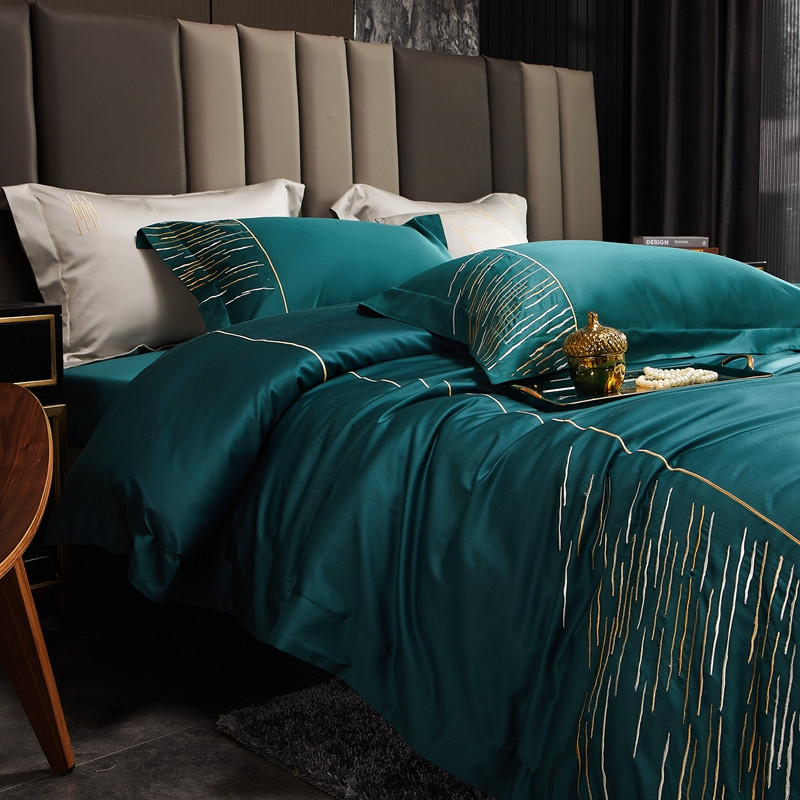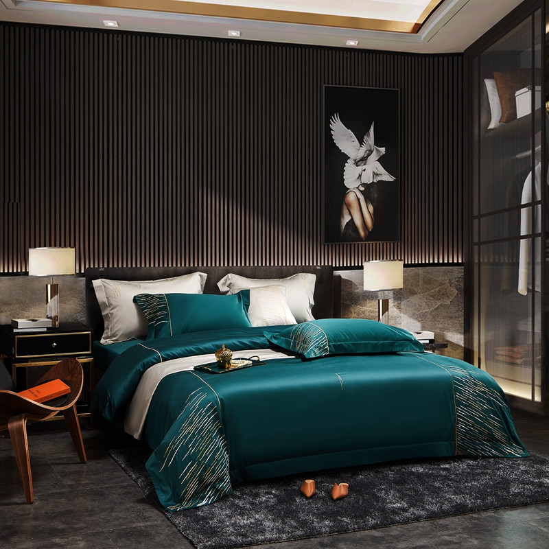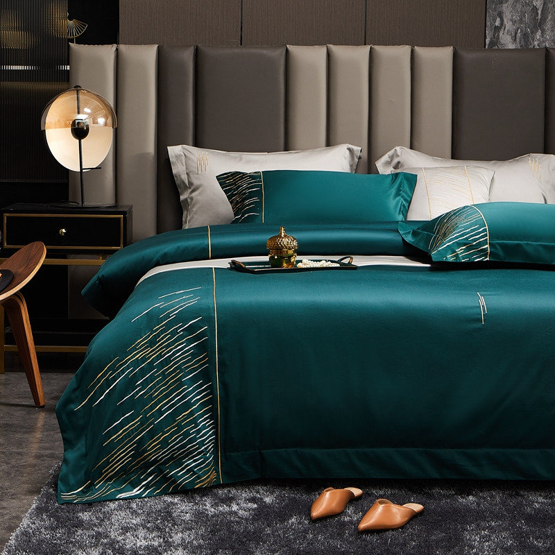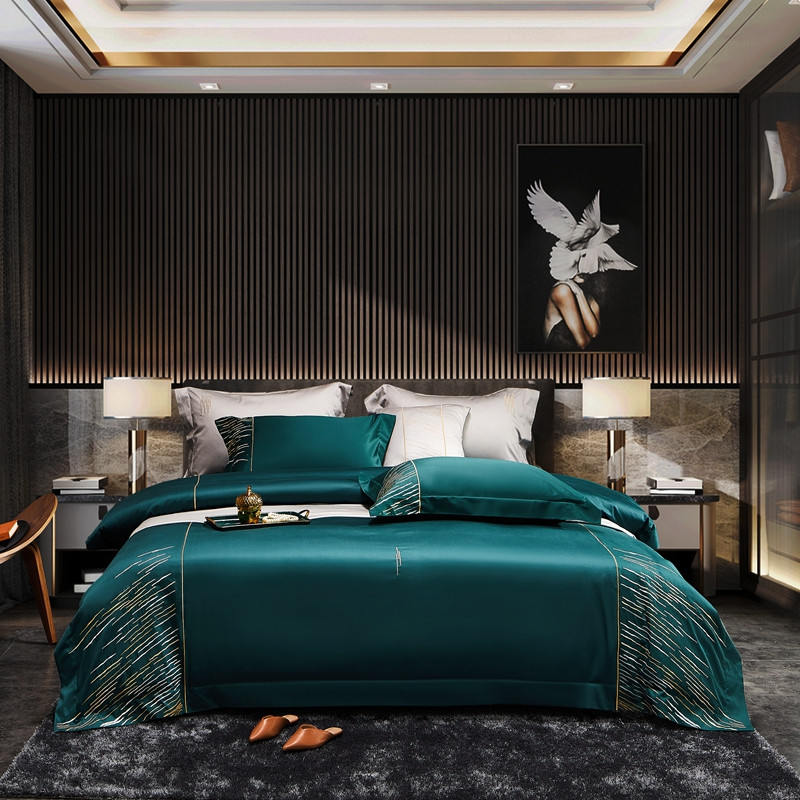 涞澳家纺2021新款100支全棉长绒棉工艺款四件套-时光深绿