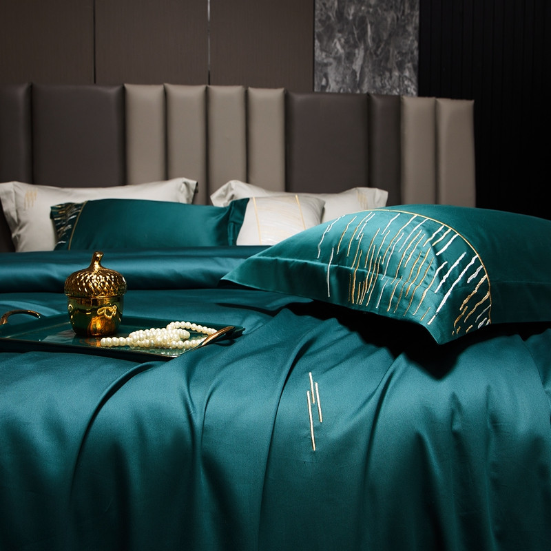 商品名称:涞澳家纺2021新款100支全棉长绒棉工艺款四件套-时光深绿